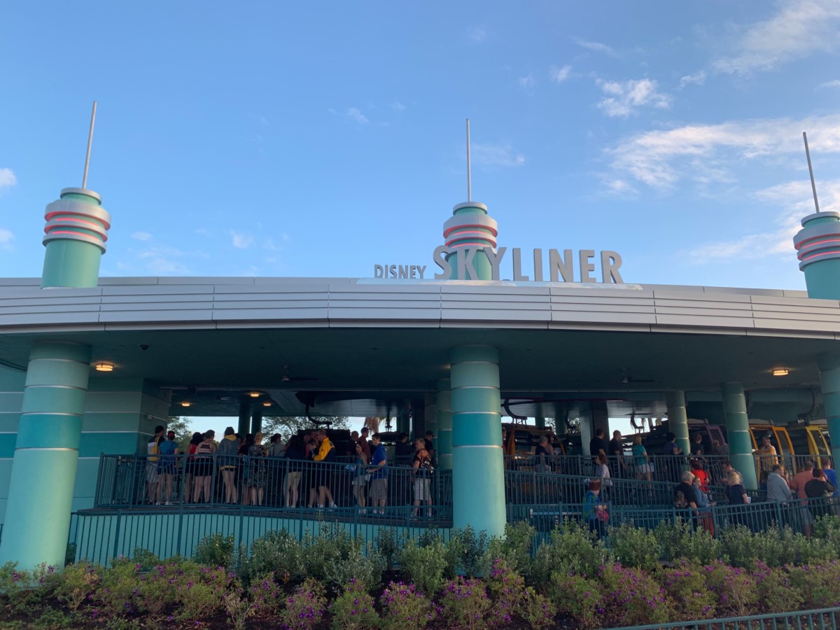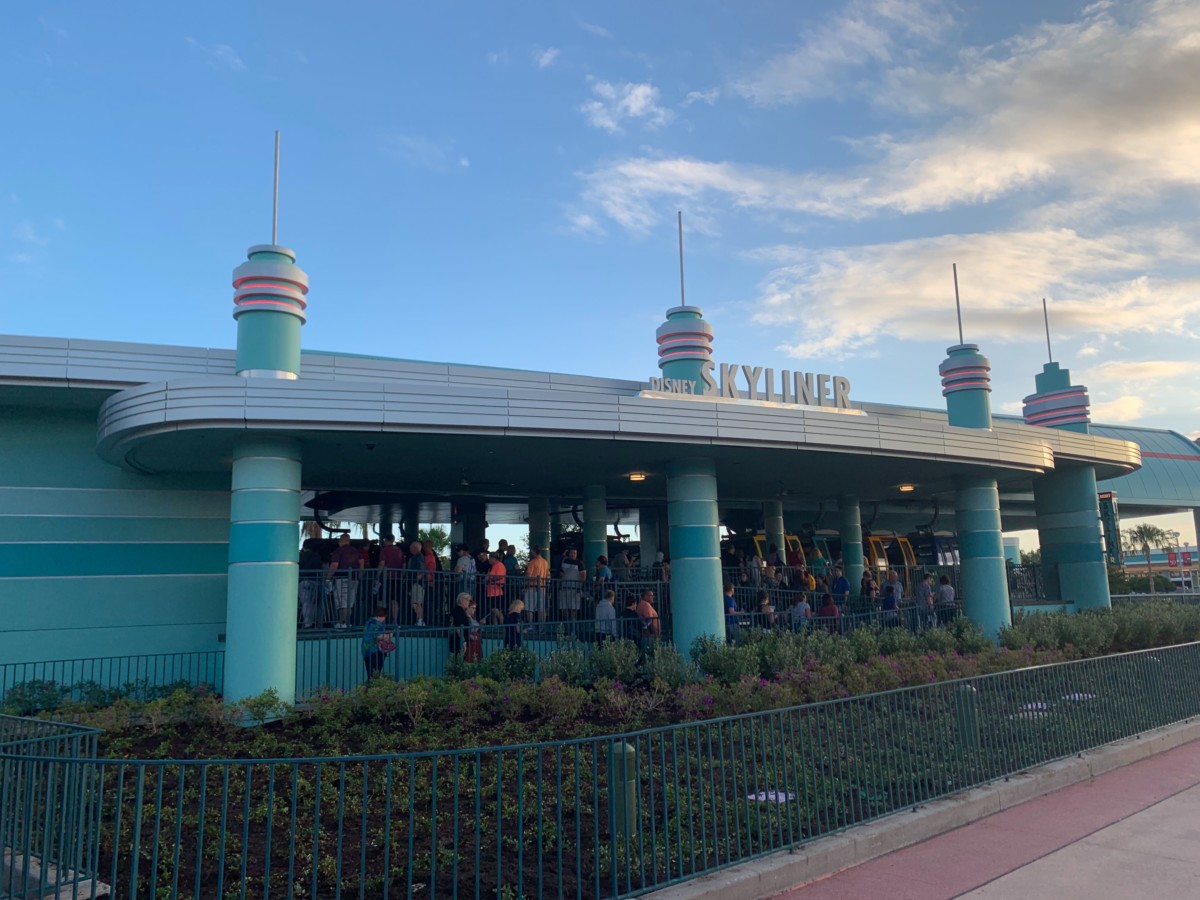 It’s a great day to catch a ride on the Disney Skyliner, especially if you’re a Cast Member, as general previews are now open to all cast. While general park guests still have to wait for the Skyliner’s official grand opening on September 29th, they can at least snag an unobstructed view of the old-school Hollywood glam station as construction walls are now down. (Yes, we’ve been craning over the fences and walls this whole time to bring you photos.) Check out the station in its full, scrim-less glory below!