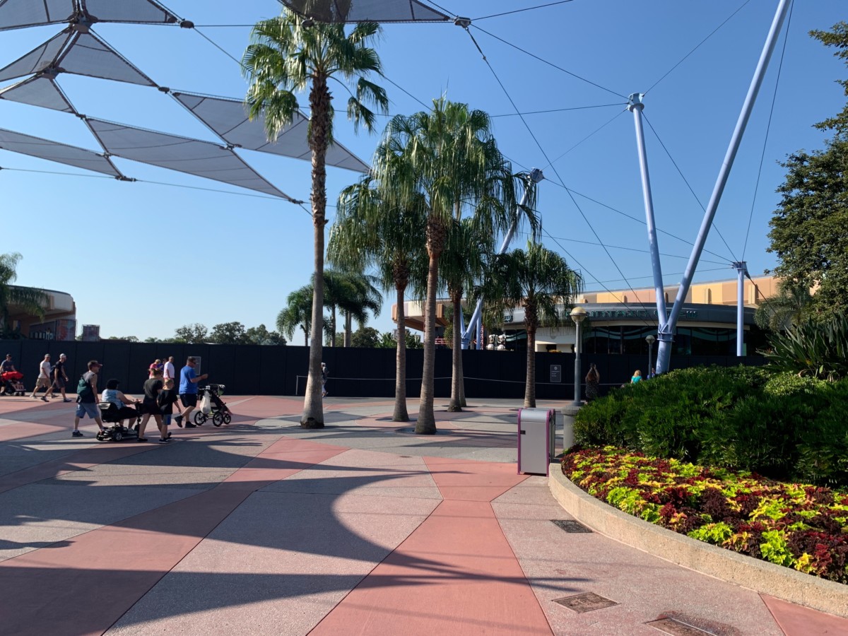 These construction walls precede the demolition work that will take place to make way for Epcot’s new Festival Center and a portion of one of the new neighborhood concepts that will comprise the new Epcot: World Celebration.