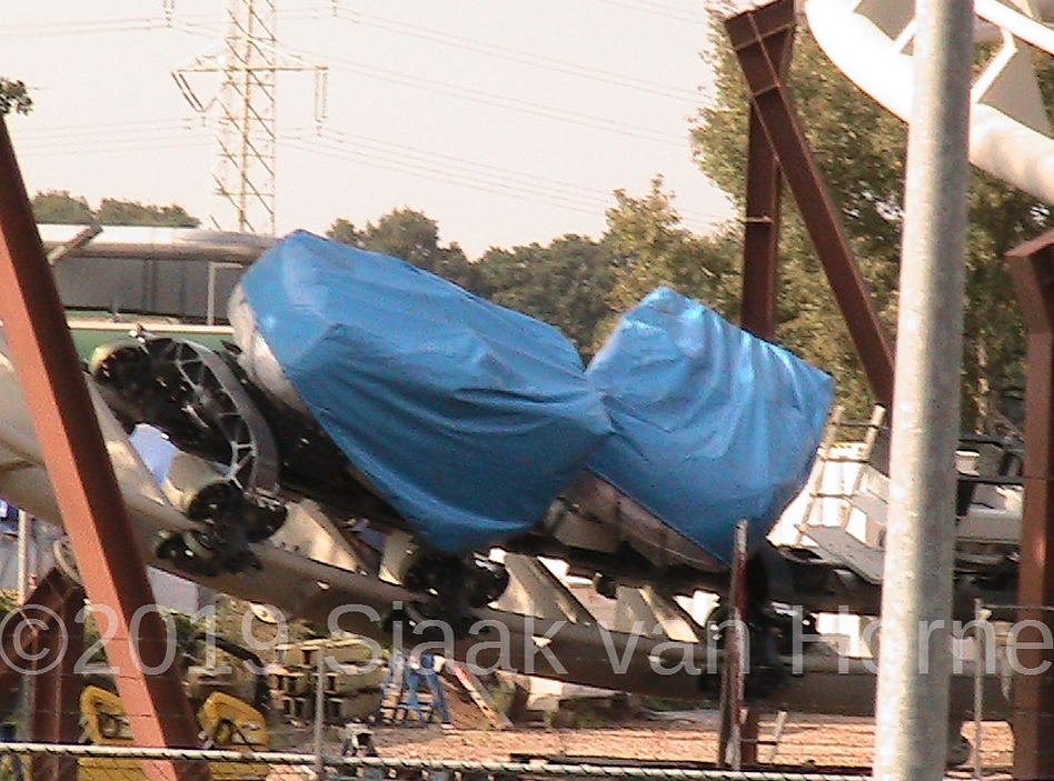 The ride vehicles first appeared covered by tarps, but thankfully, one was removed, leaving the full ride vehicle out in sight: