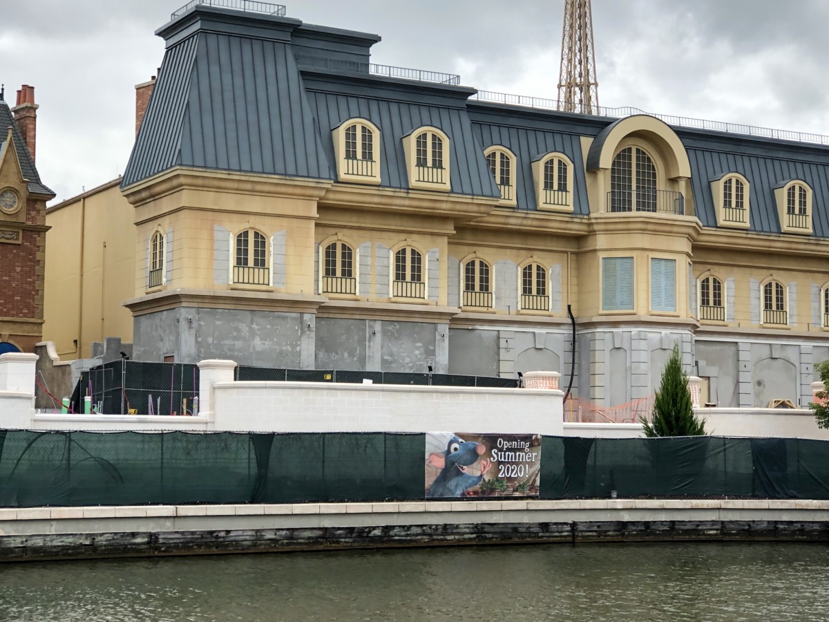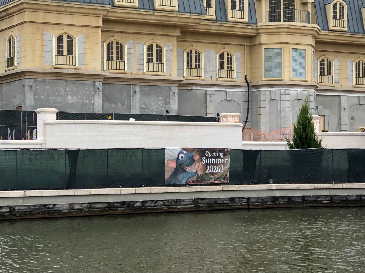 Remy, in his chef hat, announces “Opening Summer 2020” on this new sign.