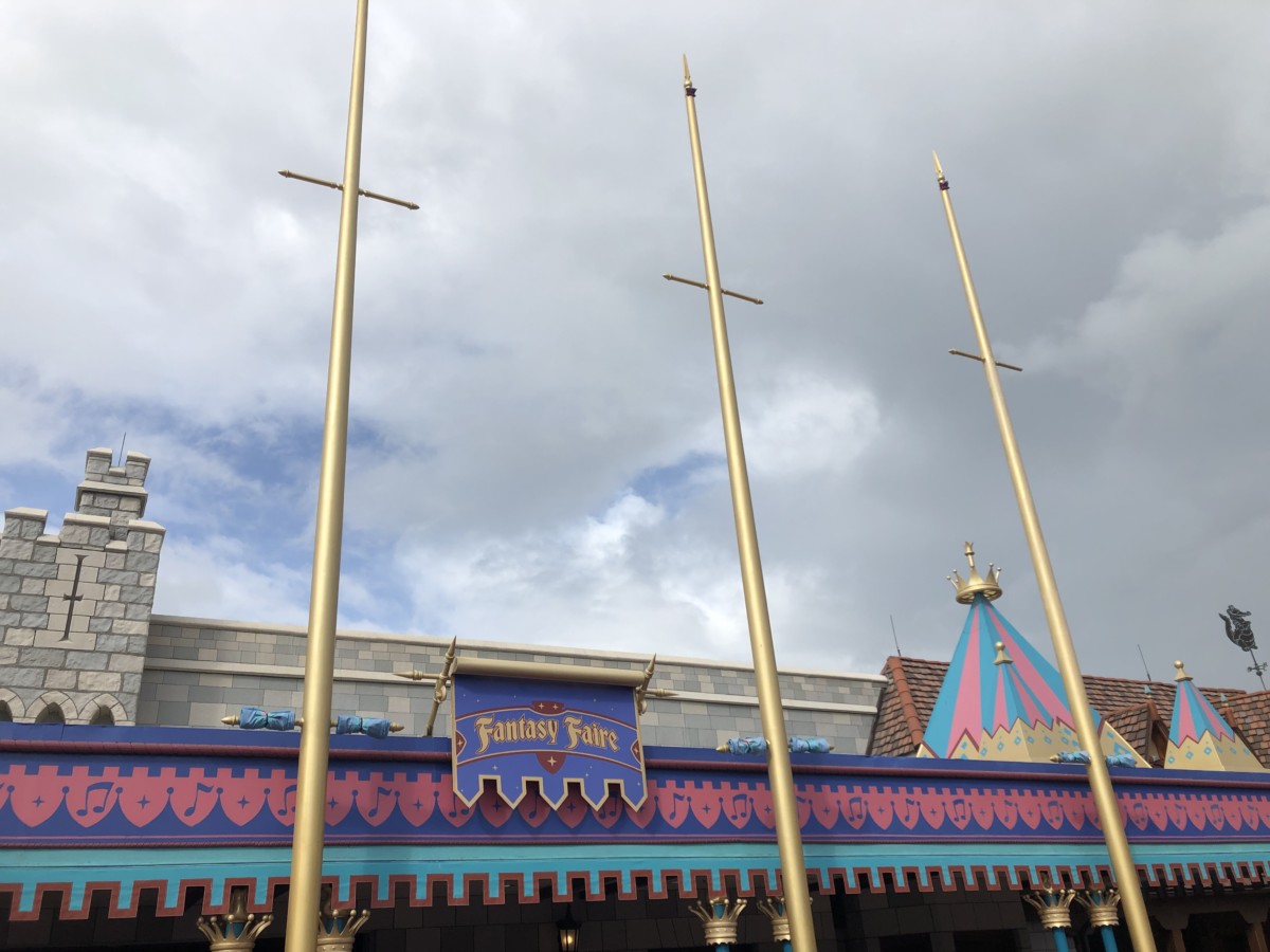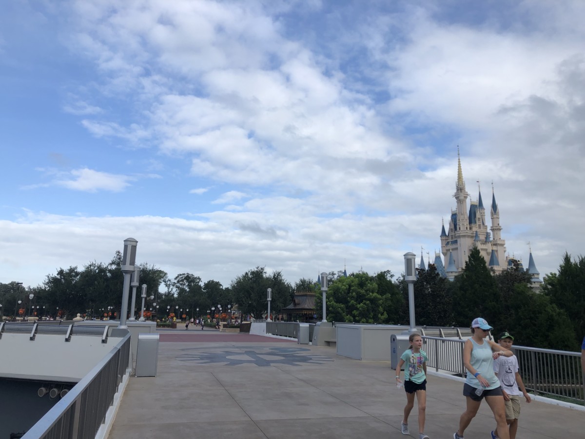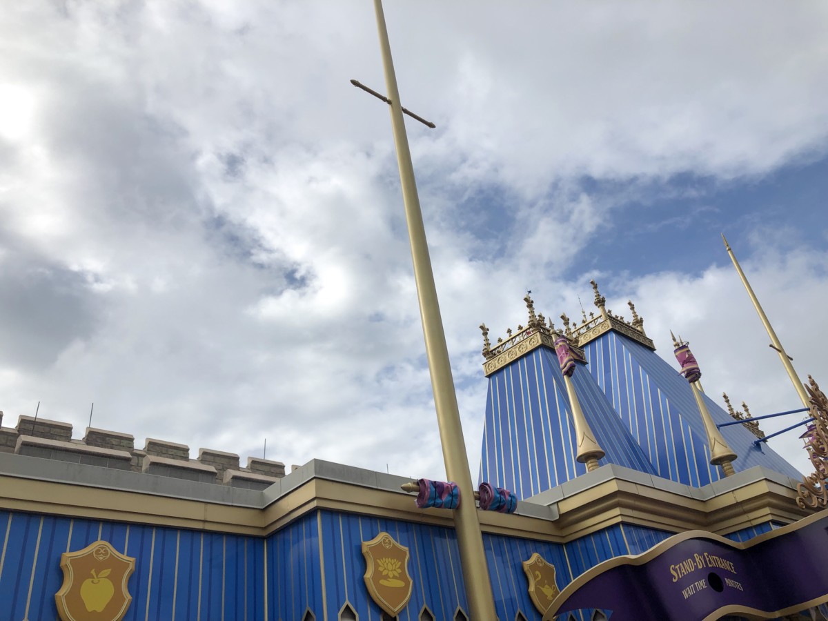 Tinker Bell’s wire has been removed! It’s such a strange sight to see. The cable from Cinderella Castle to Tomorrowland that Tinker Bell uses has been completely taken down to prepare for the hurricane. Tink definitely shouldn’t be flying in these conditions.