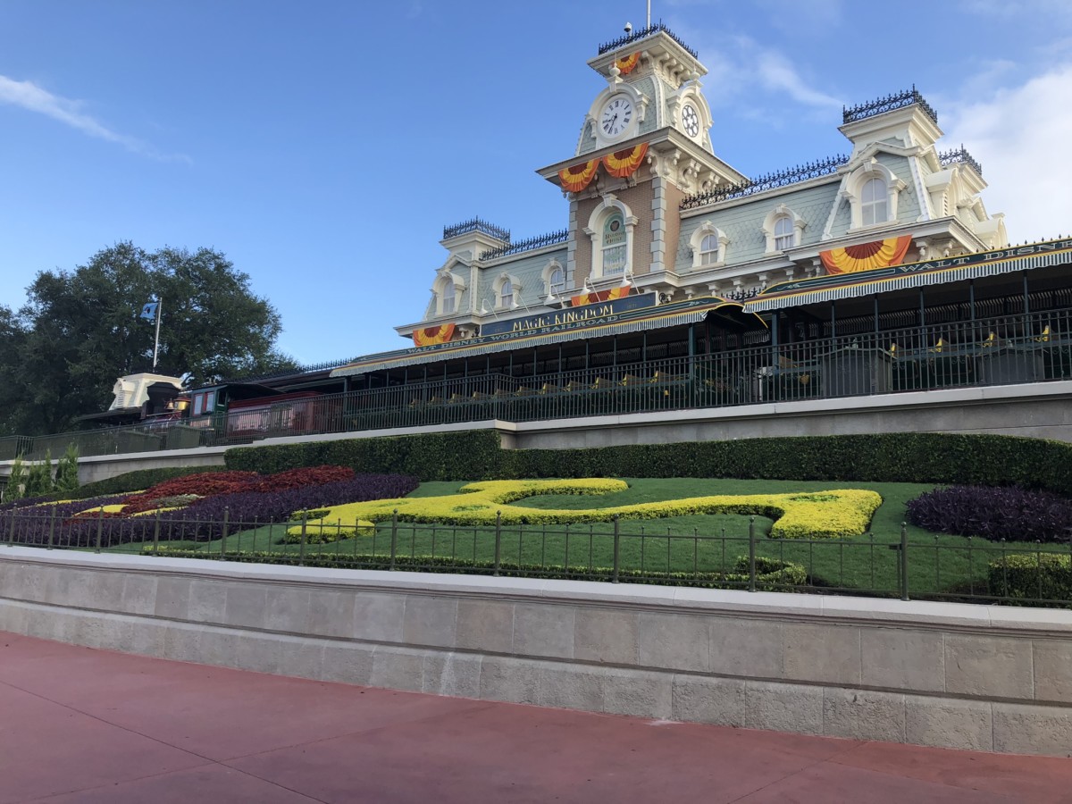 The small pumpkins have been removed around the entrance of the park, but they will return. The wreaths, banners, and larger pumpkin statues are still in place, though.