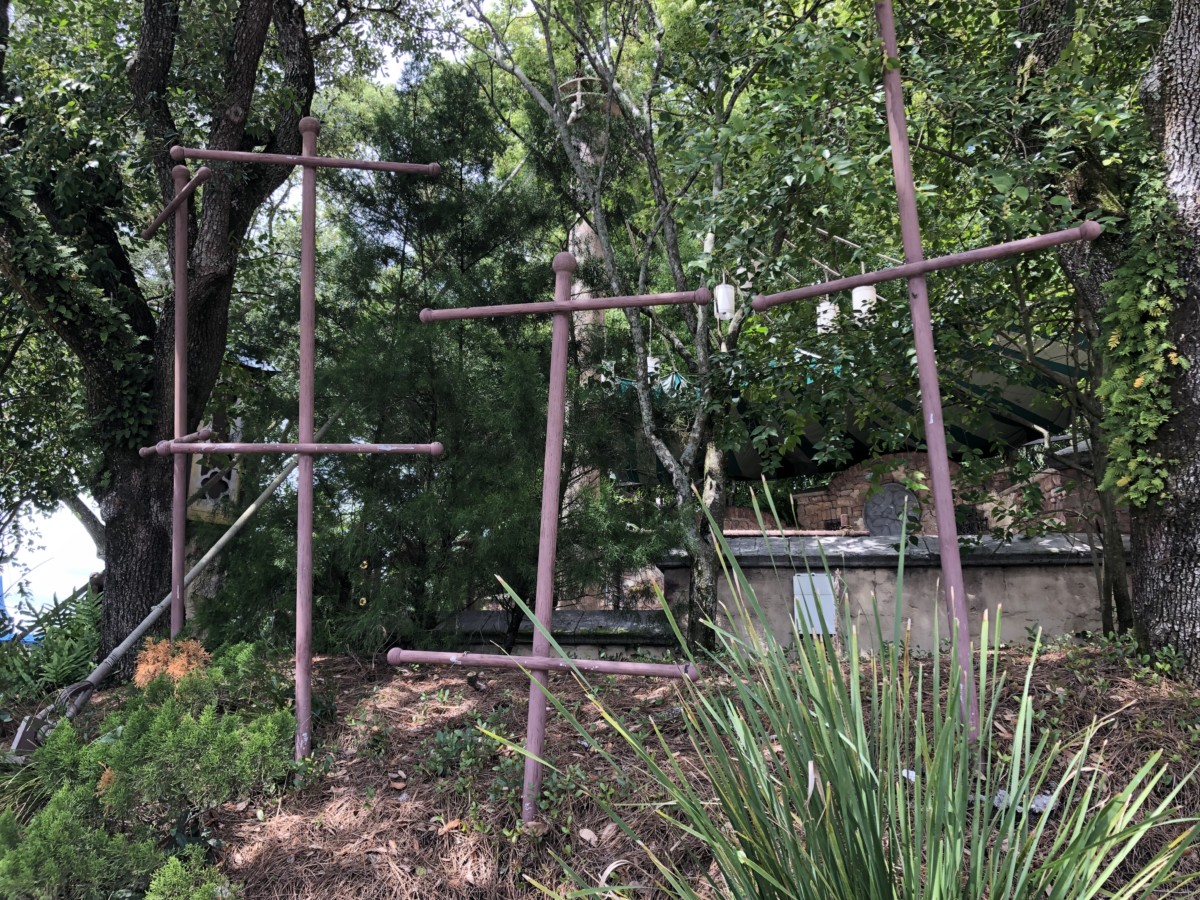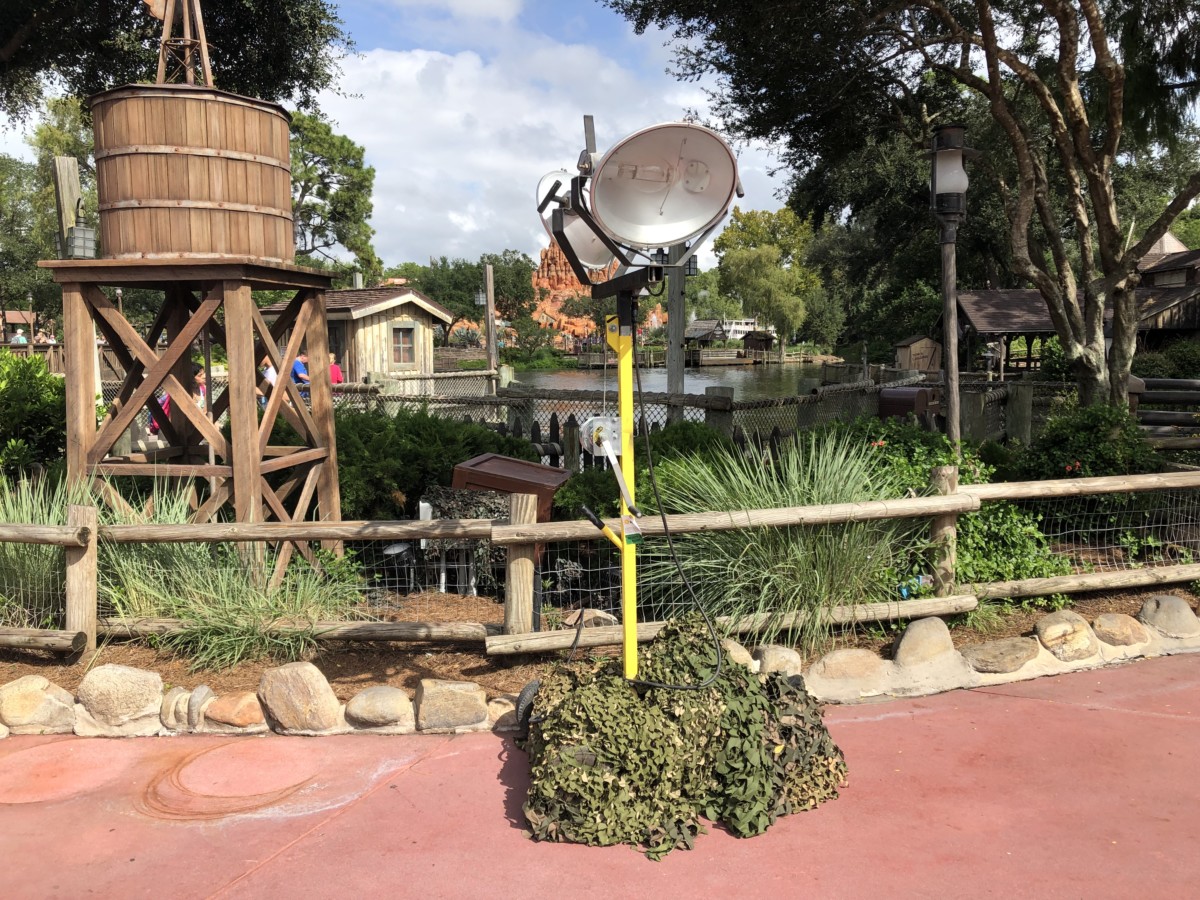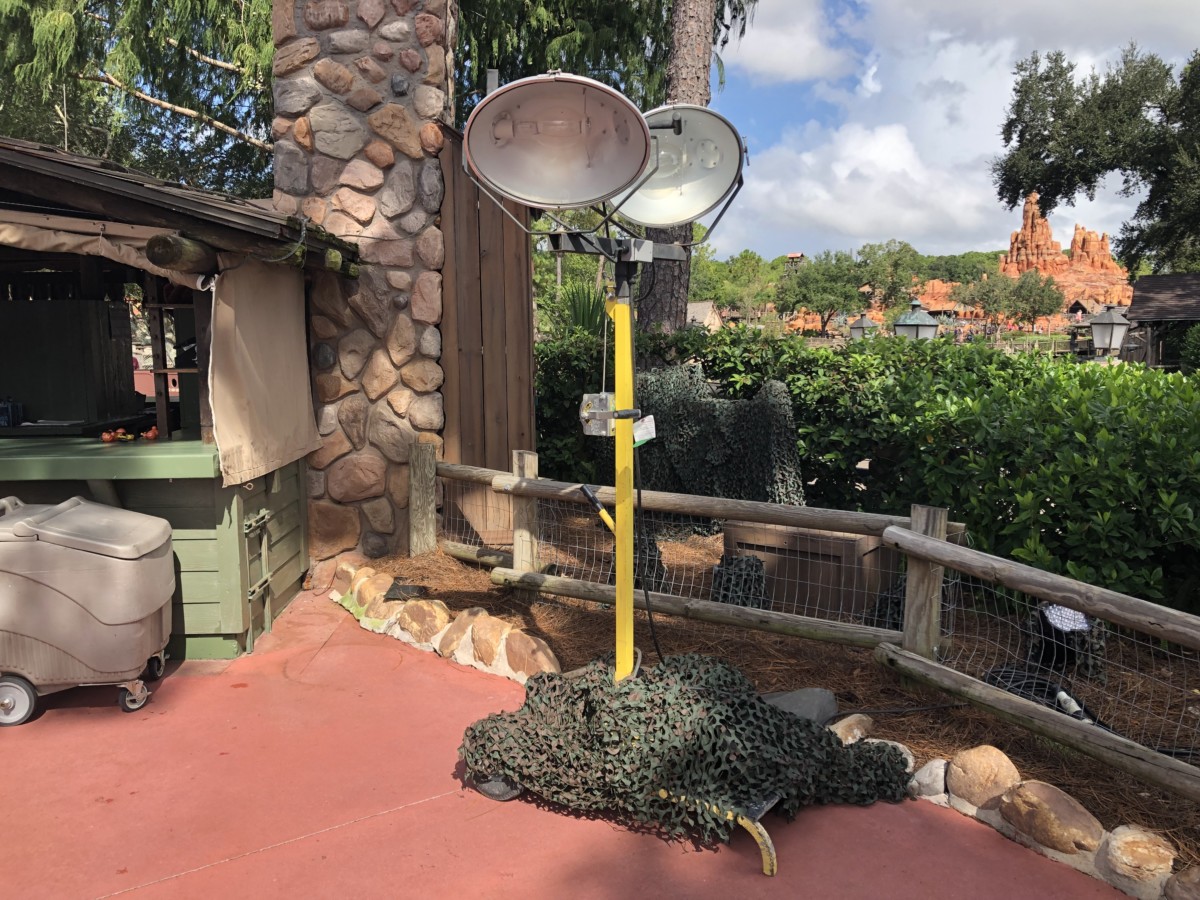 Temporary lighting fixtures have been set up along the parade route in Frontierland. The Boo to You Parade lighting fixtures have been removed for now, so these will have to do for now.