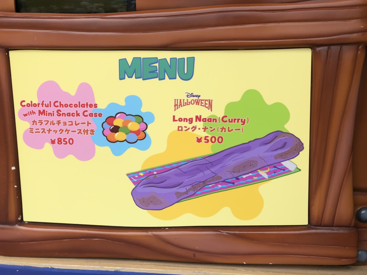 It’s time for Disney Halloween at Tokyo Disney Resort! And one of my favorite parts of any Tokyo Disney Resort event is the array of snacks and food items available! In this series of reviews, I’ll be detailing every single new snack and counter-service item. The beef sauce long naan is one of my favorite snacks at Tokyo Disneyland. It’s incredibly filling and delicious, plus a decent deal at ¥500. Unfortunately, like the Gyoza Dog’s replacement, they’ve taken a great snack and replaced it with something okay for Disney Halloween. So, let’s take a look at the Curry Long Naan.