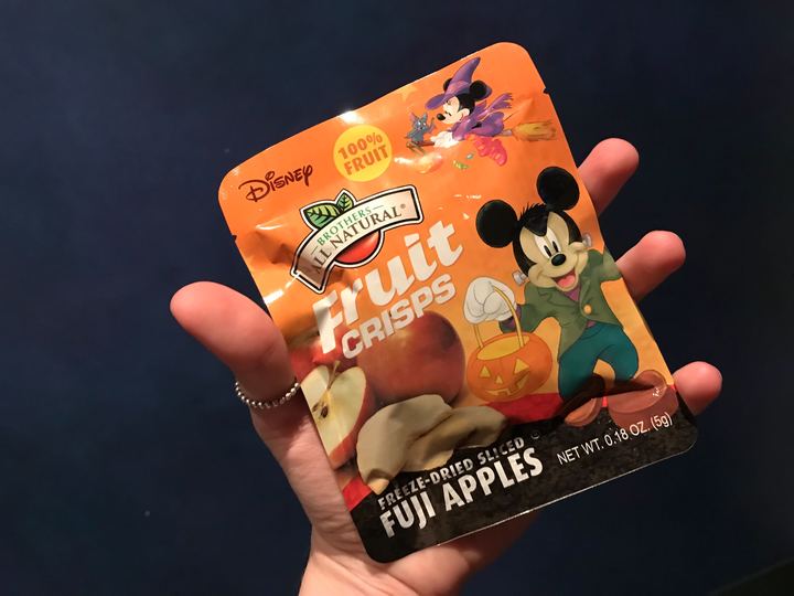 A note on treats. I was surprised at the sheer variety of candy. Do you like Skittles? Good, there’s like four or more varieties of them being distributed. Same goes for Snickers, Starburst, and every other type of candy out there. At each station (and I didn’t learn this until I overheard someone else ask), you can also request “healthy treats”, and depending on the trail, and availability, you can score baby carrots, apple slices, grapes, and even these nifty freeze-dried fuji apple crisps with Franken-Mickey on the front. These are sold in larger bags throughout the day at most snack stands around the park, and they aren’t cheap, so if you like these, stocking up not only gives you more value for your party ticket, but also snacks to munch on the next day.