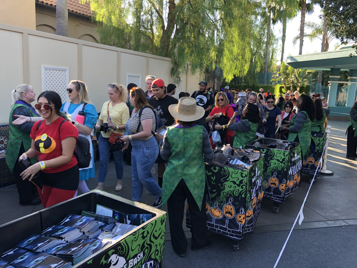 If you happen to be in the park, you can just head on over to the wristband distribution areas (there were two––one at the entrance gates and at Blue Sky Cellar) for your wristband and starter treat bag. If you’re serious about treats, any Disney Parks Halloween veteran will tell you to bring an extra, larger bag. And if you were excited about an Oogie Boogie Bash-specific treat bag, well too bad. It was the same exact generic design as the ones over at Mickey’s Not-So-Scary Halloween Party at Walt Disney World.