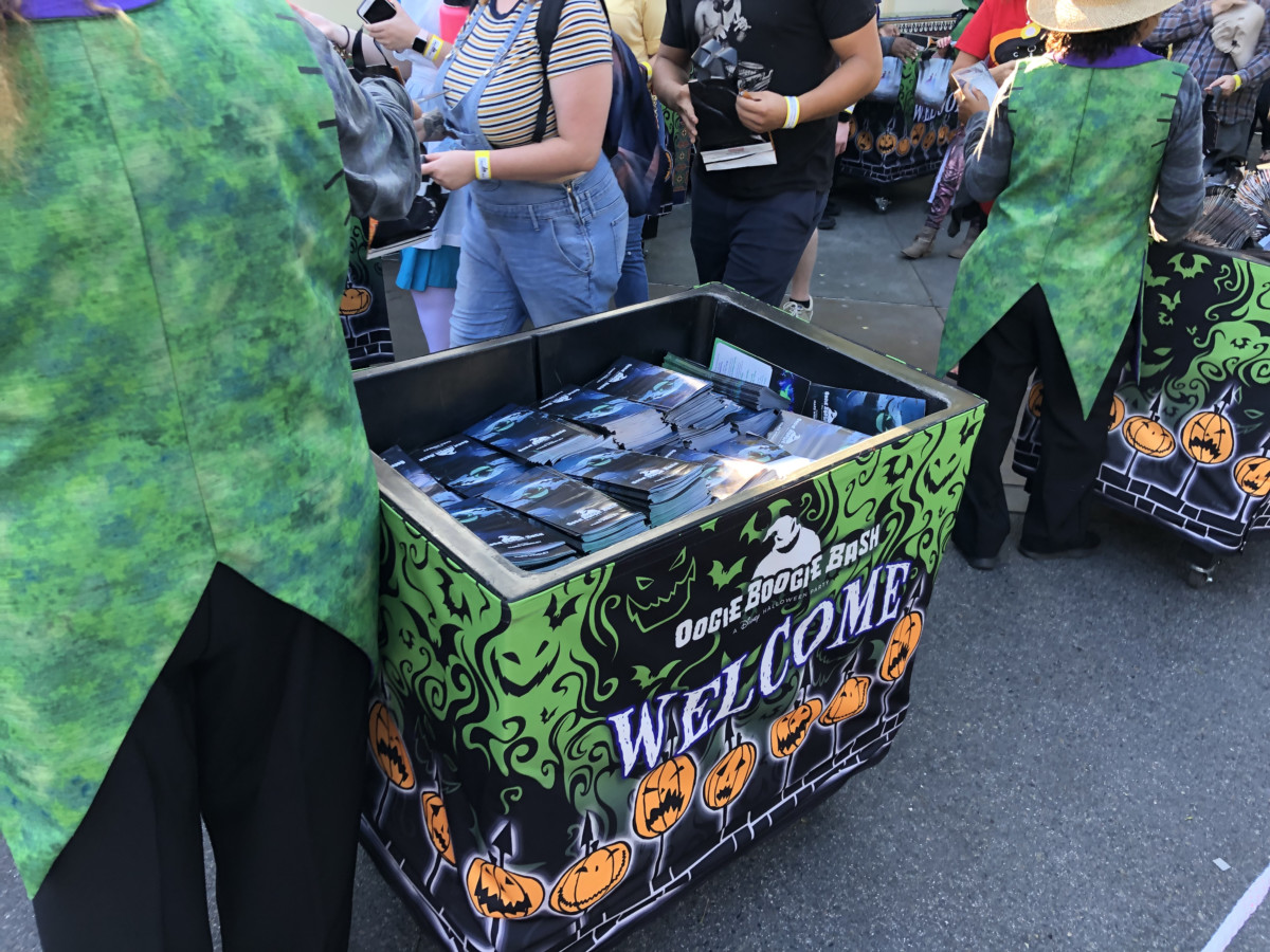 If you happen to be in the park, you can just head on over to the wristband distribution areas (there were two––one at the entrance gates and at Blue Sky Cellar) for your wristband and starter treat bag. If you’re serious about treats, any Disney Parks Halloween veteran will tell you to bring an extra, larger bag. And if you were excited about an Oogie Boogie Bash-specific treat bag, well too bad. It was the same exact generic design as the ones over at Mickey’s Not-So-Scary Halloween Party at Walt Disney World.