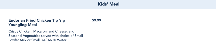 “Fried Chicken Tip-Yip Youngling Meal” … so, uh… is that a meal made OF younglings? ;)