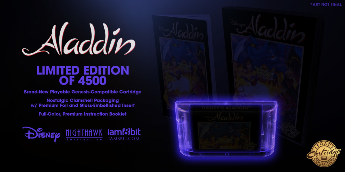 The Aladdin video game is historically significant for many reasons – from its and groundbreaking approach to character animation to its incredible integration of the film’s beloved songs. It proved, upon its initial release in 1993, that licensed products can also be high art. This Genesis version of Aladdin is presented in true Legacy Cartridge Collection elegance, complete with lovingly restored artwork, gleaming translucent cartridge shells, a full-color premium manual and other retro pack-in surprises. Everything that you’ve come to expect from iam8bit’s definitive series, honoring games that defined retro gaming excellence.