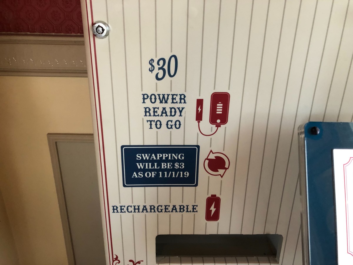 Well, it’s the end of an era for FuelRod portable chargers in the parks. We noticed something was up once kiosks began changing out their “Free Unlimited Swapping” signage for just “Swappable”, but weren’t sure if that was merely a change in phrasing. Turns out, it was a sign of things to come: