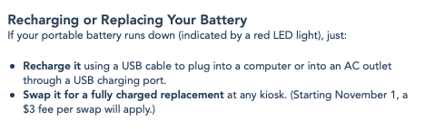 However, the Portable Phone Charging Systems Kiosks page on the Disneyland Resort website has also since been updated to reflect the upcharge: “Starting November 1, a $3 fee per swap will apply.”