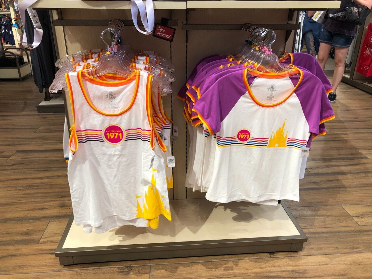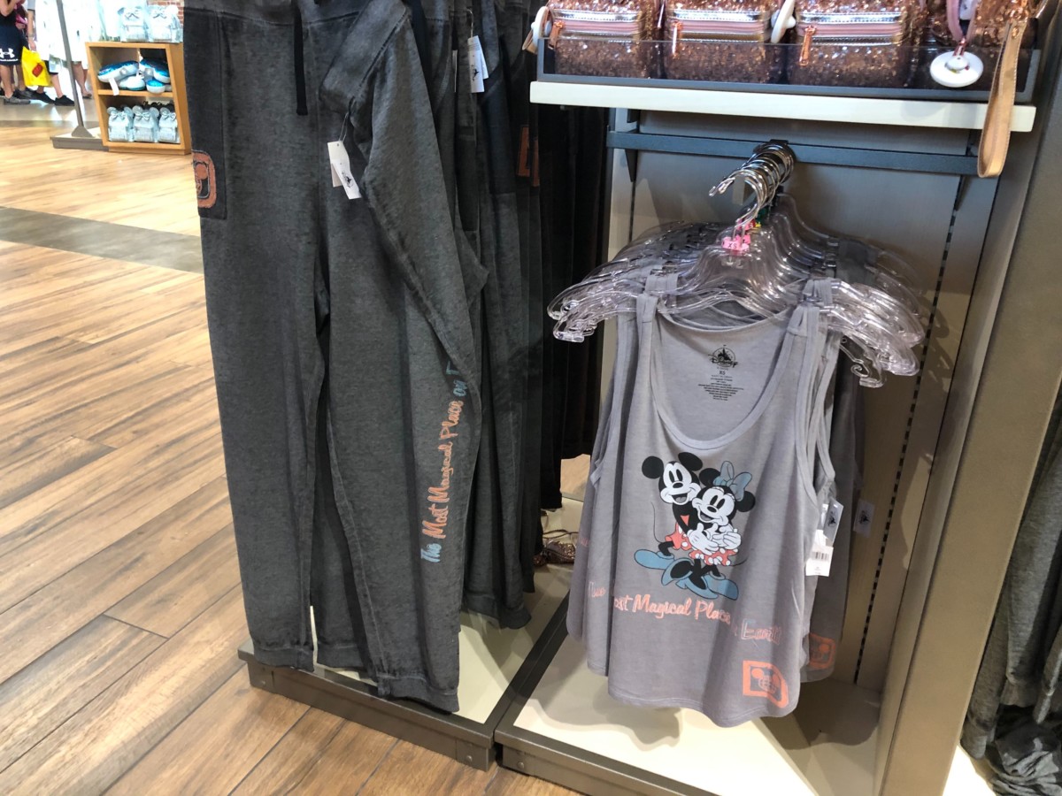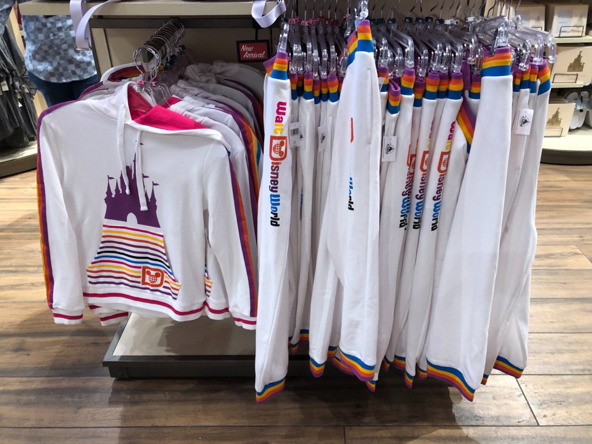 Over at World of Disney, we spotted more retro merchandise in the form of sweatpants, sweatshirt, and tops. Check out the bright colors on this 1971 Walt Disney World collection.