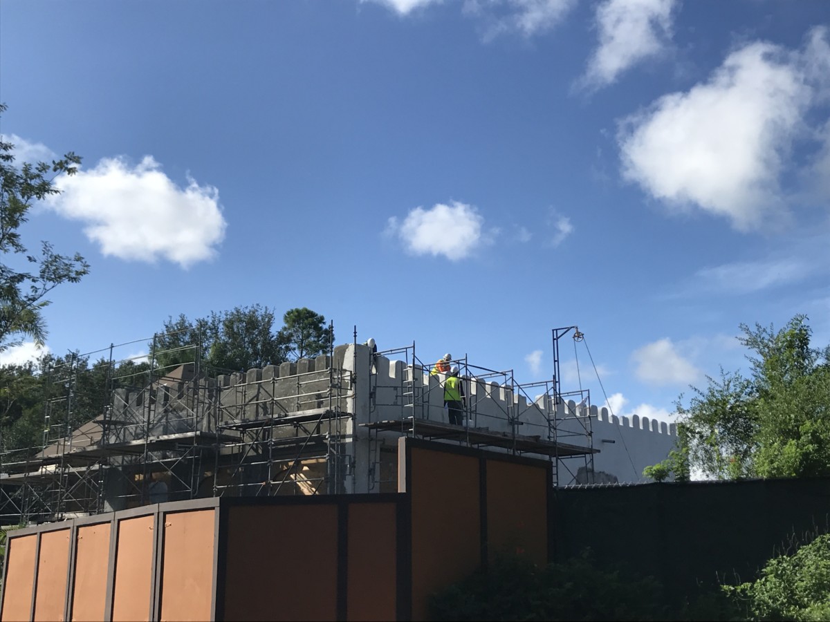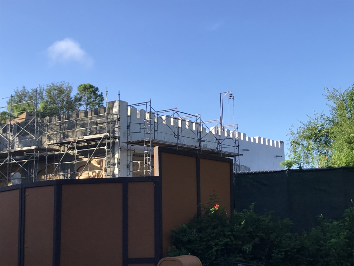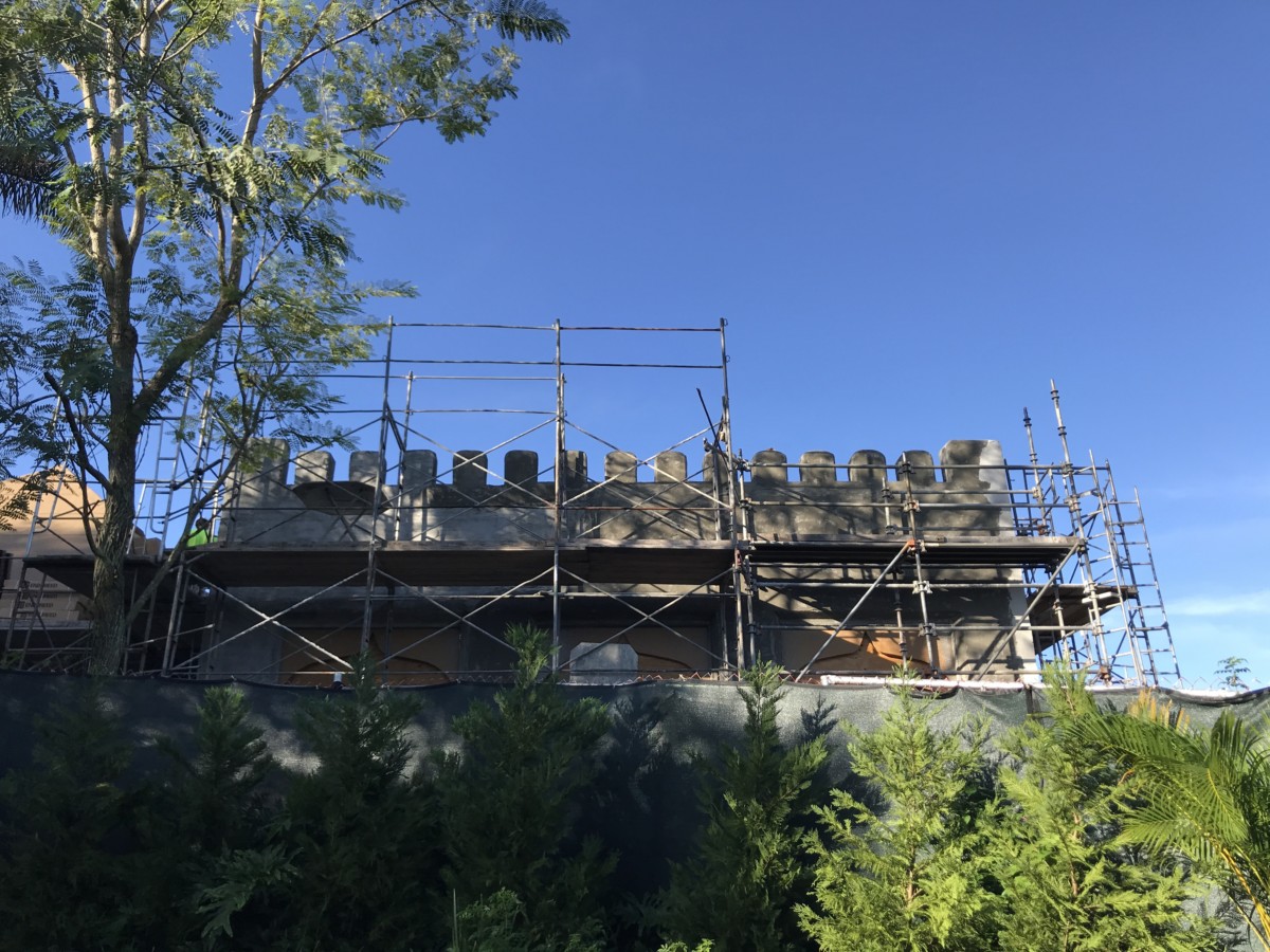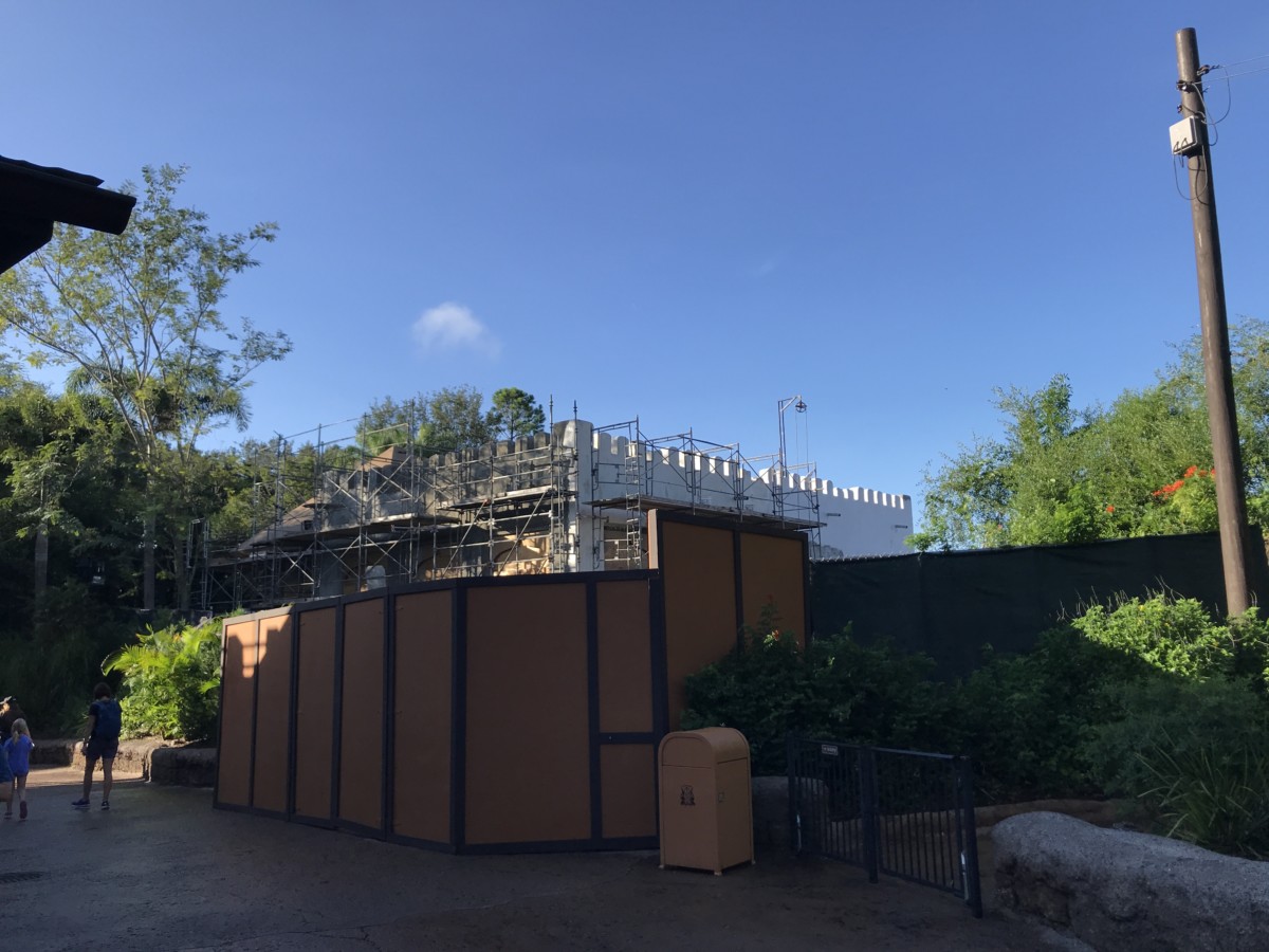 The more boxy portion of the building has been painted a white wash color to match the rest of Harambe Village.