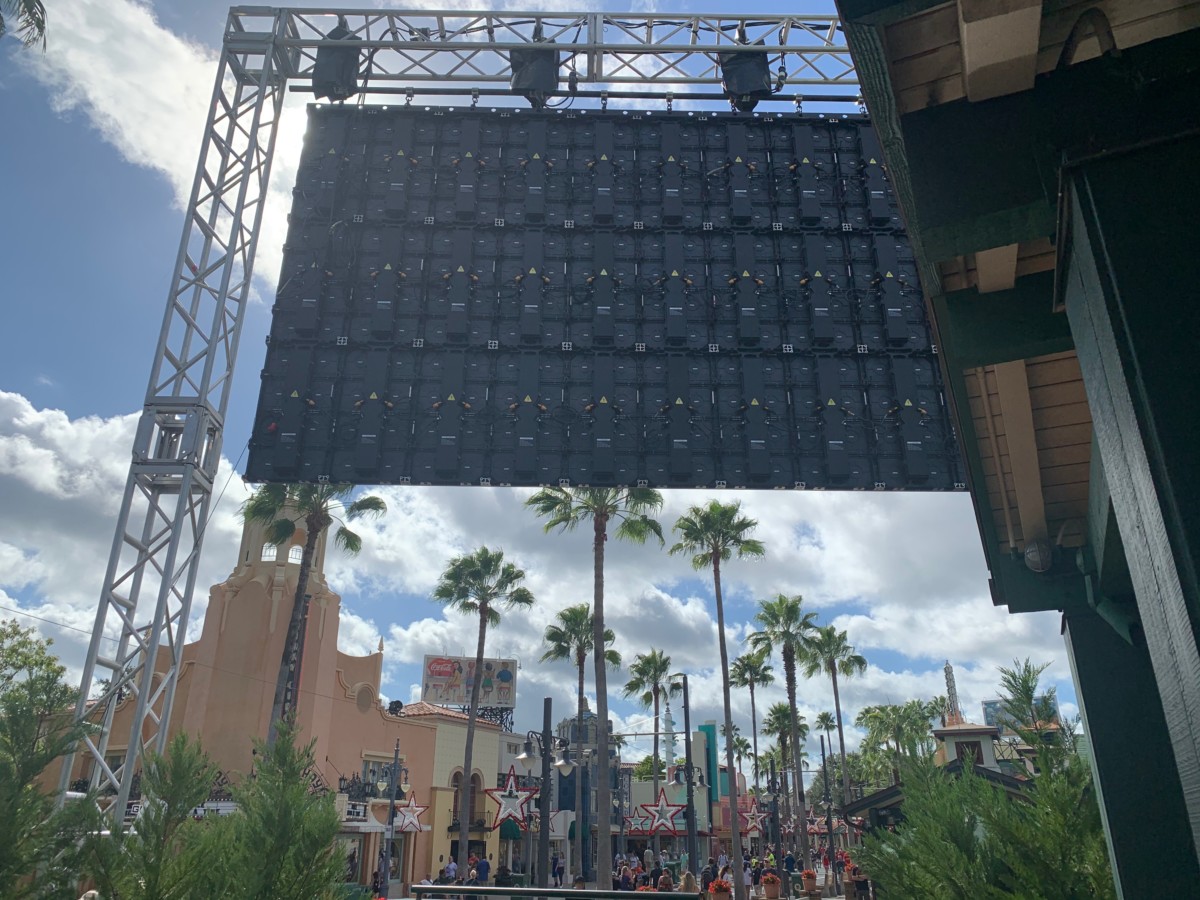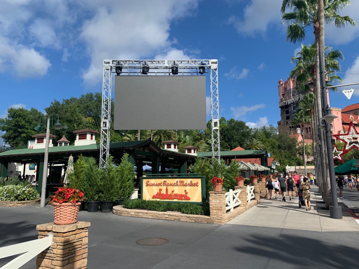 We are approaching the holiday season very quickly, and in preparation, a large screen has been put up right outside of Sunset Ranch market for the Sunset Seasons Greetings show.