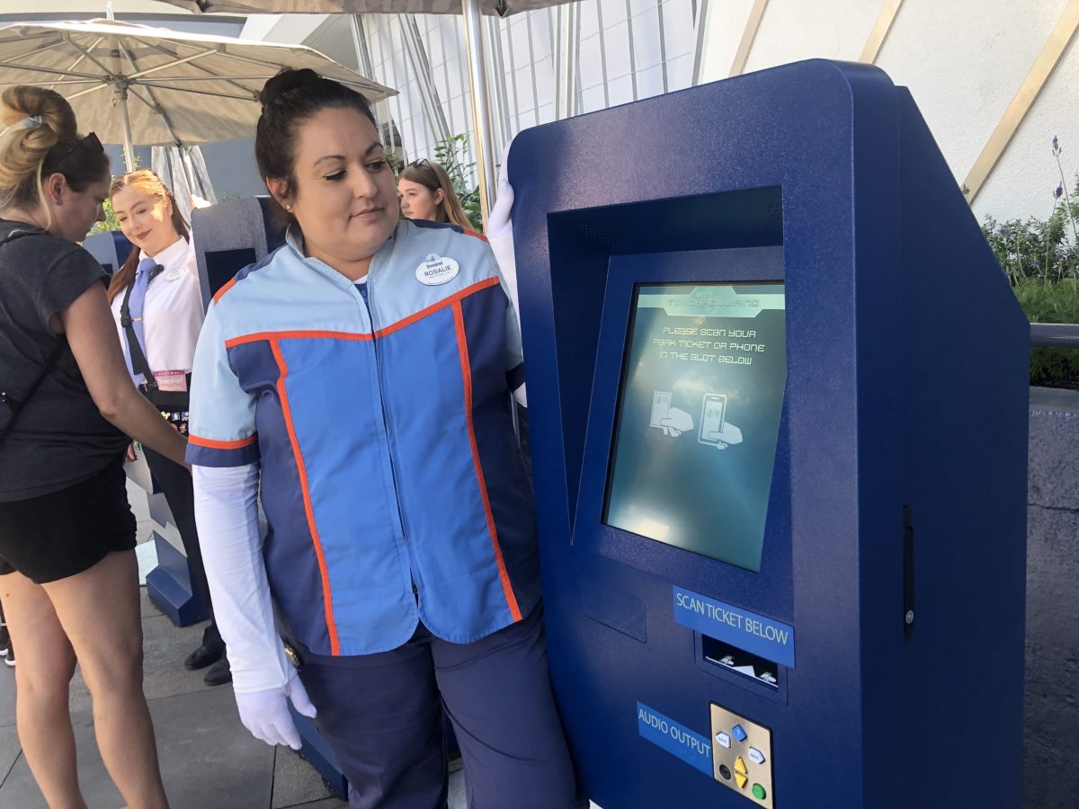 The kiosks are certainly busy. There are only three machines available, but there is a Cast Member posted by the kiosks to help guests with any questions or issues. Conversely, having these kiosks centralized in one spot does help clear out clusters of people along attraction entrances and pathways.
