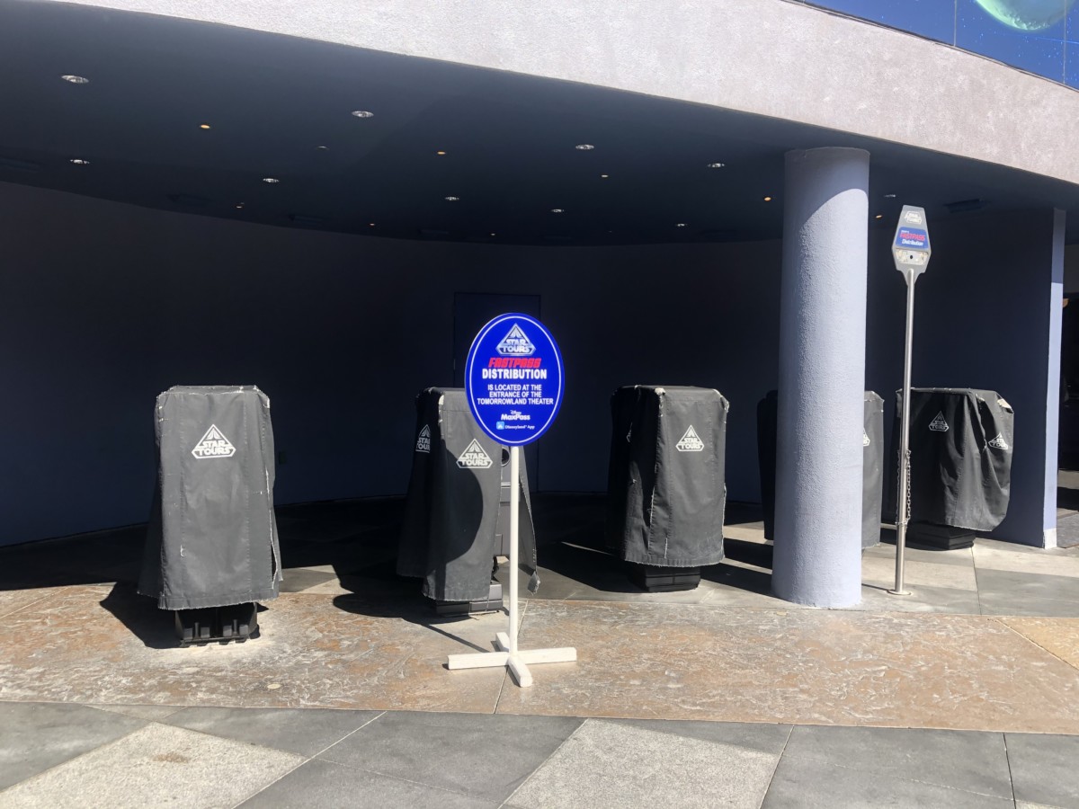 As you walk into Tomorrowland, you’ll notice that Fastpass kiosks for individual attractions, like Star Tours, now have covers over them.