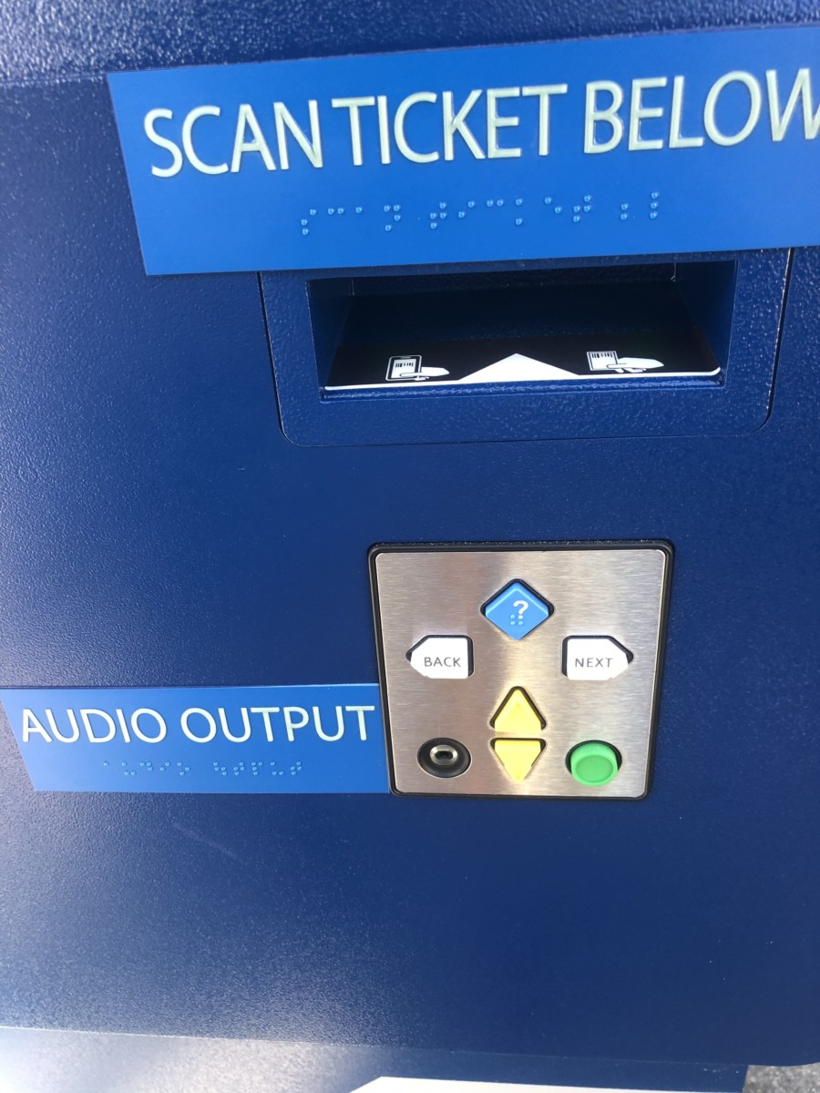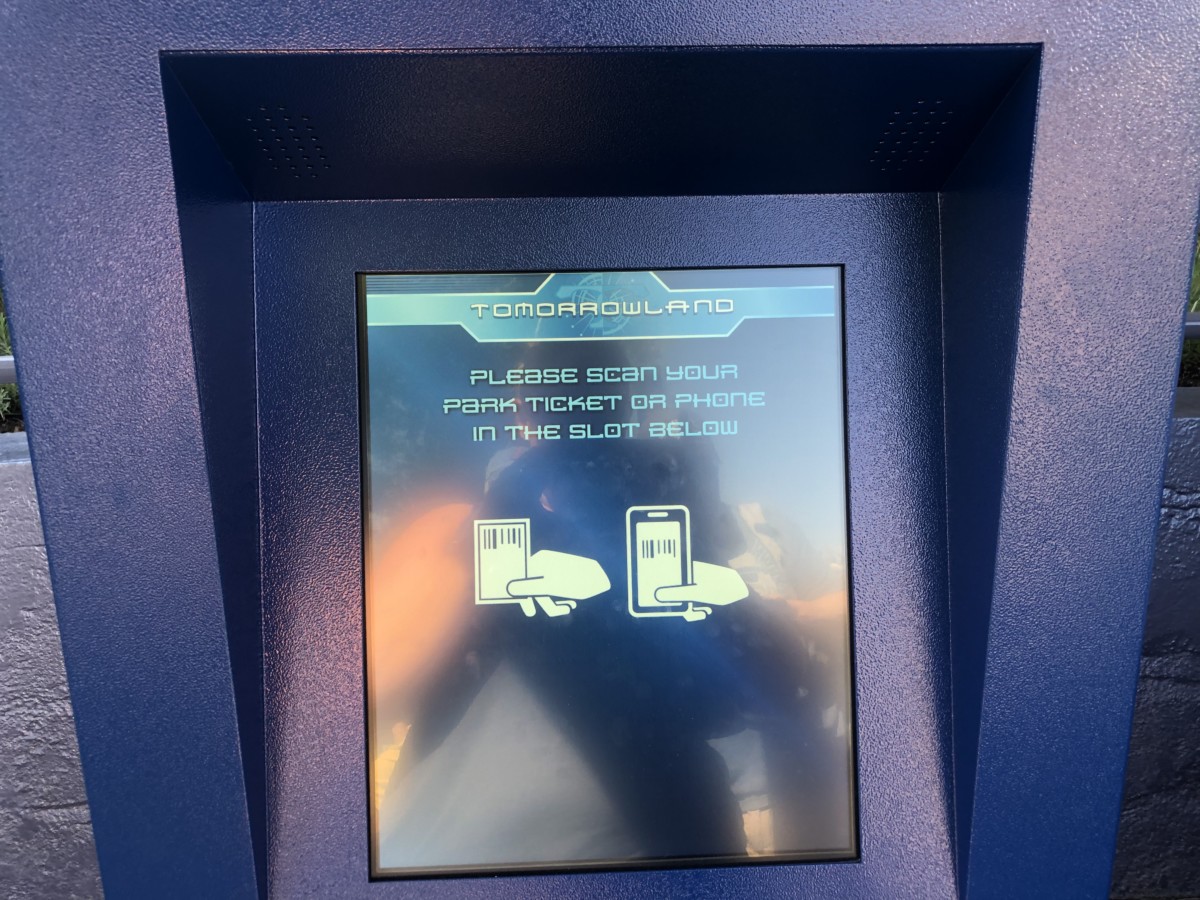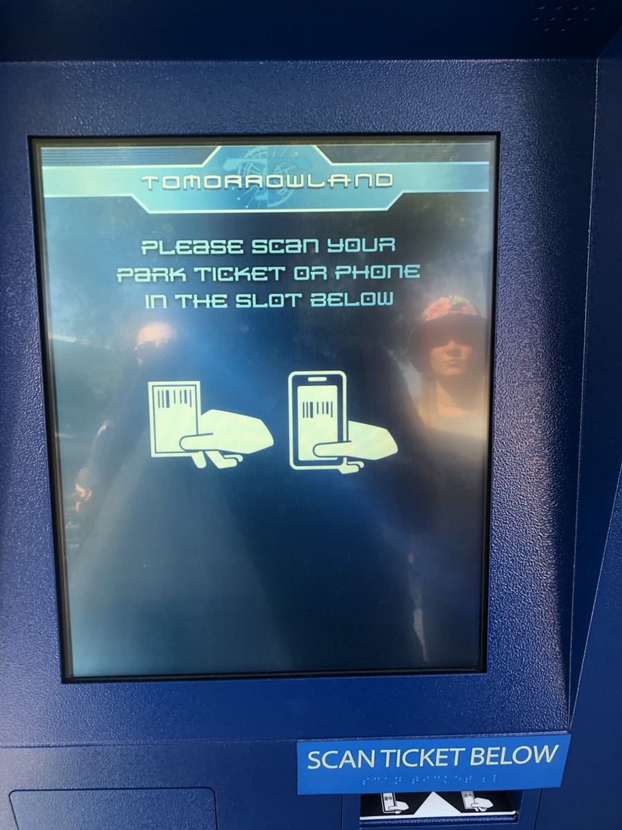 You start by scanning your ticket or phone, if you’ve linked your ticket to the Disneyland App. The opening by the scanner is big enough to fit all phones. A headphone jack, plus additional buttons with braille are available at the bottom for guests with disabilities.