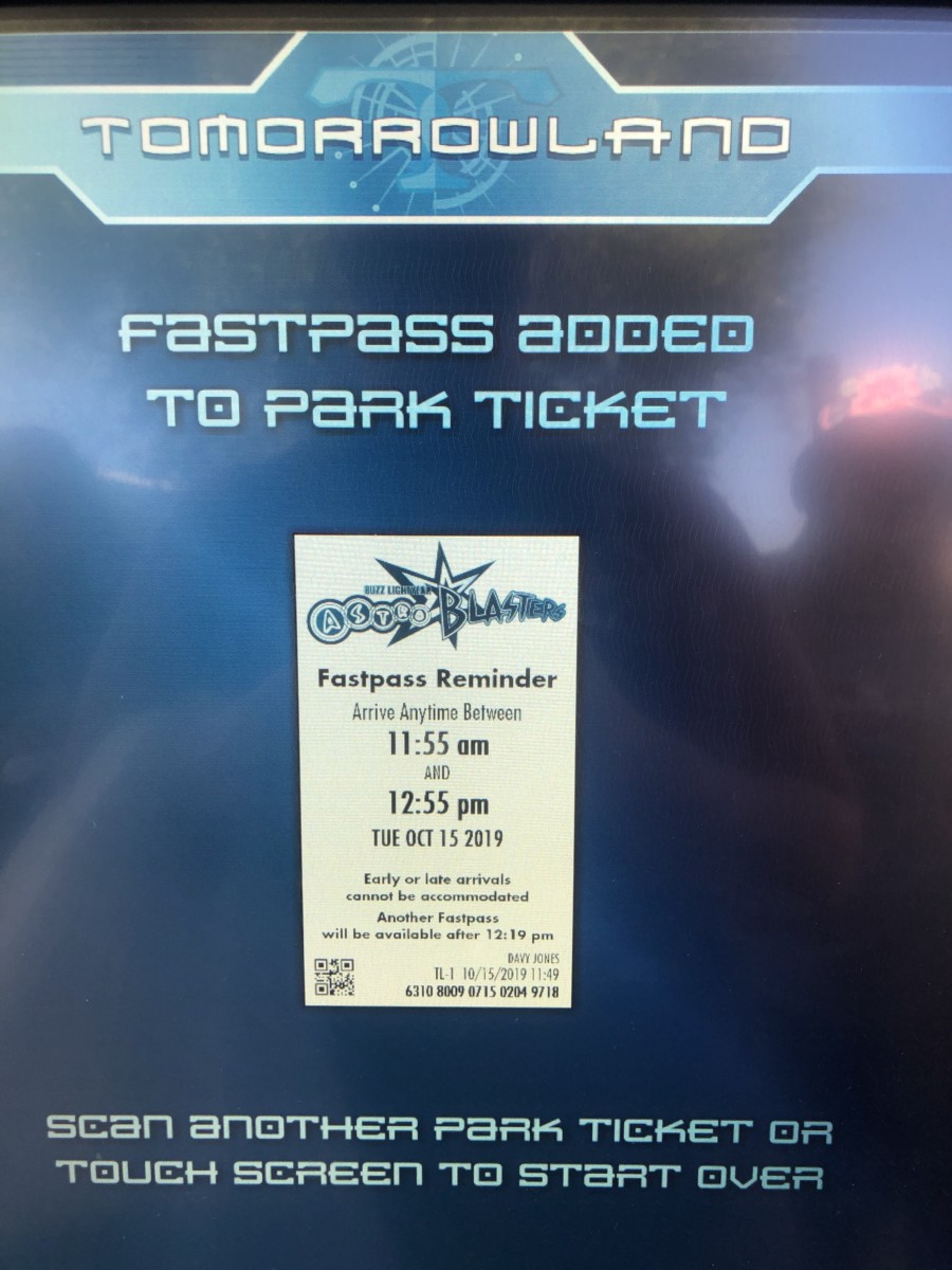 If you’ve scanned your phone, the Fastpass then shows up integrated onto the app. Like MaxPass, you then scan that barcode at the Fastpass entrance. If you don’t have your ticket linked, you could probably take a photo of the screen with your phone as a reminder. Once in your return time window, simply scan your park ticket at the Fastpass entrance. (In any case, Cast Members are encouraging guests to download the app to best keep track of Fastpasses.)