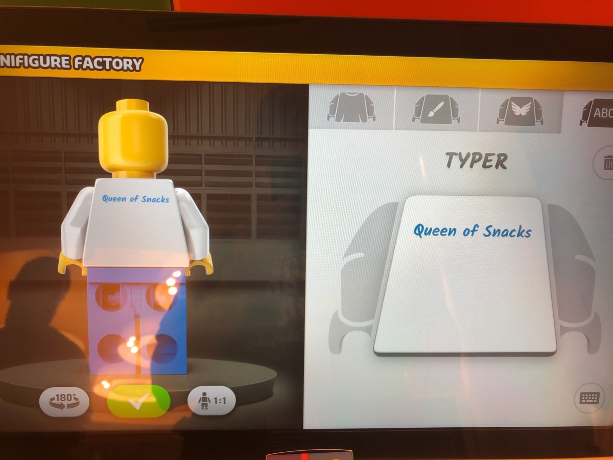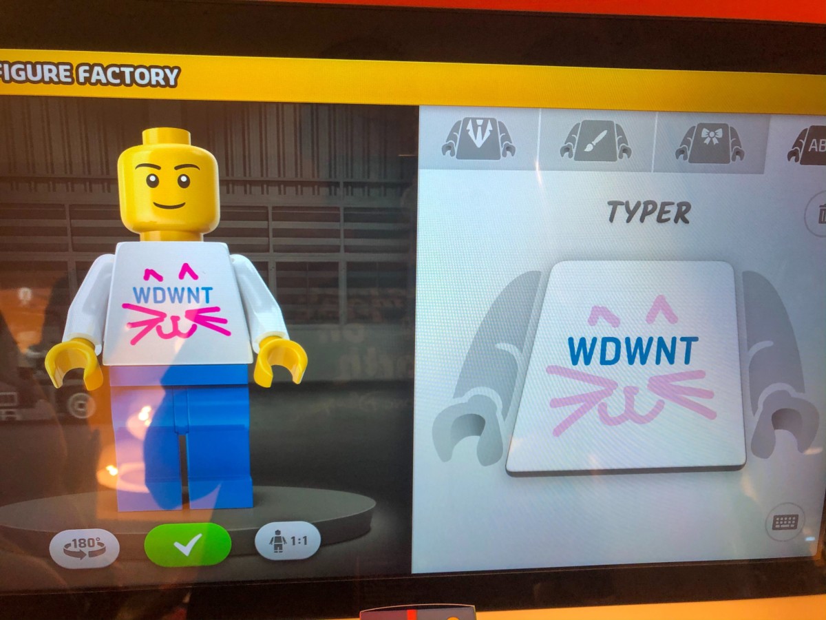 That was really easy, and relatively inexpensive for a unique, one-of-a-kind souvenir. It was a lot of fun designing this one, and actually made me want to come back and create an army of MiniFigs. If you’re going to be making one of these, plan to spend at least 30 minutes from start to finish. Due to a limited number of kiosks, you may have to wait a few minutes in line, so factor that in as well.