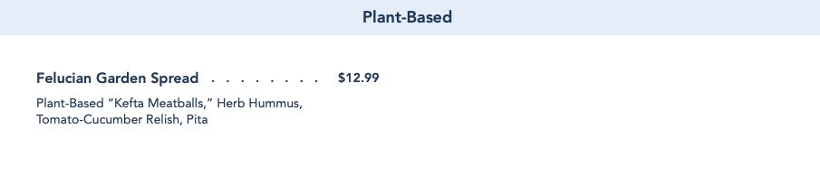 It’s interesting to note that the newly-added vegan “Meat” Marinara + Pasta that we reviewed as part of the new Kids’ Meals menu is no longer listed. We’ll have to check back in at lunch to see whether it is still available.
