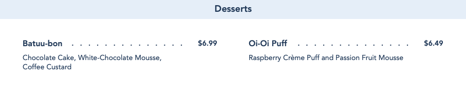 The desserts are the only items that have remained unchanged throughout all of the menu item name changes.