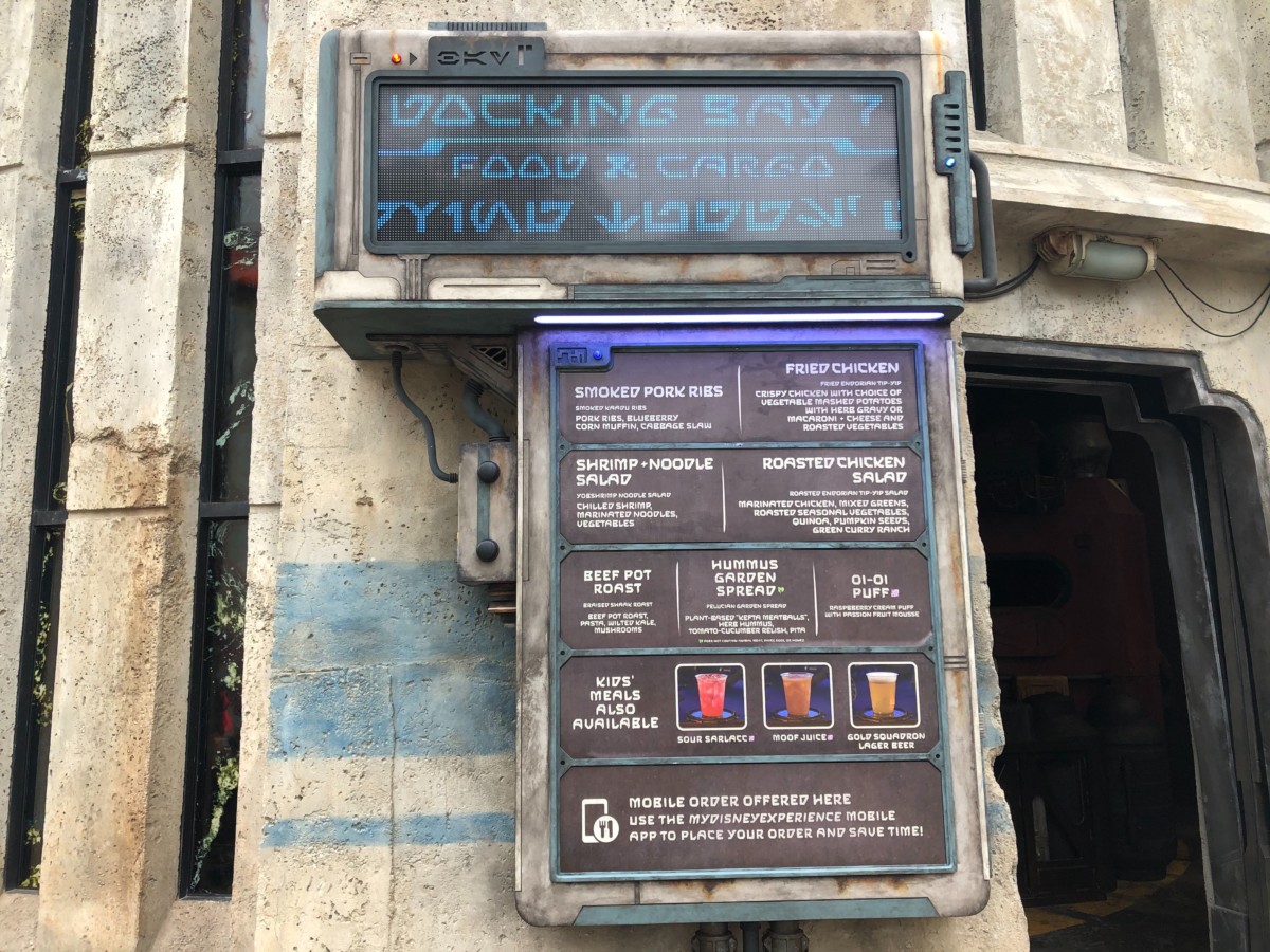 Despite menu descriptions and photos, it appears Disney wanted to make ordering easier for guests by removing the themed menu item names. This did come, however, at the cost of the in-depth immersion that was originally a part of the land’s mission. As of publishing time, the themed menu item names remain listed as-is for Docking Bay 7 at Disneyland’s Galaxy’s Edge.