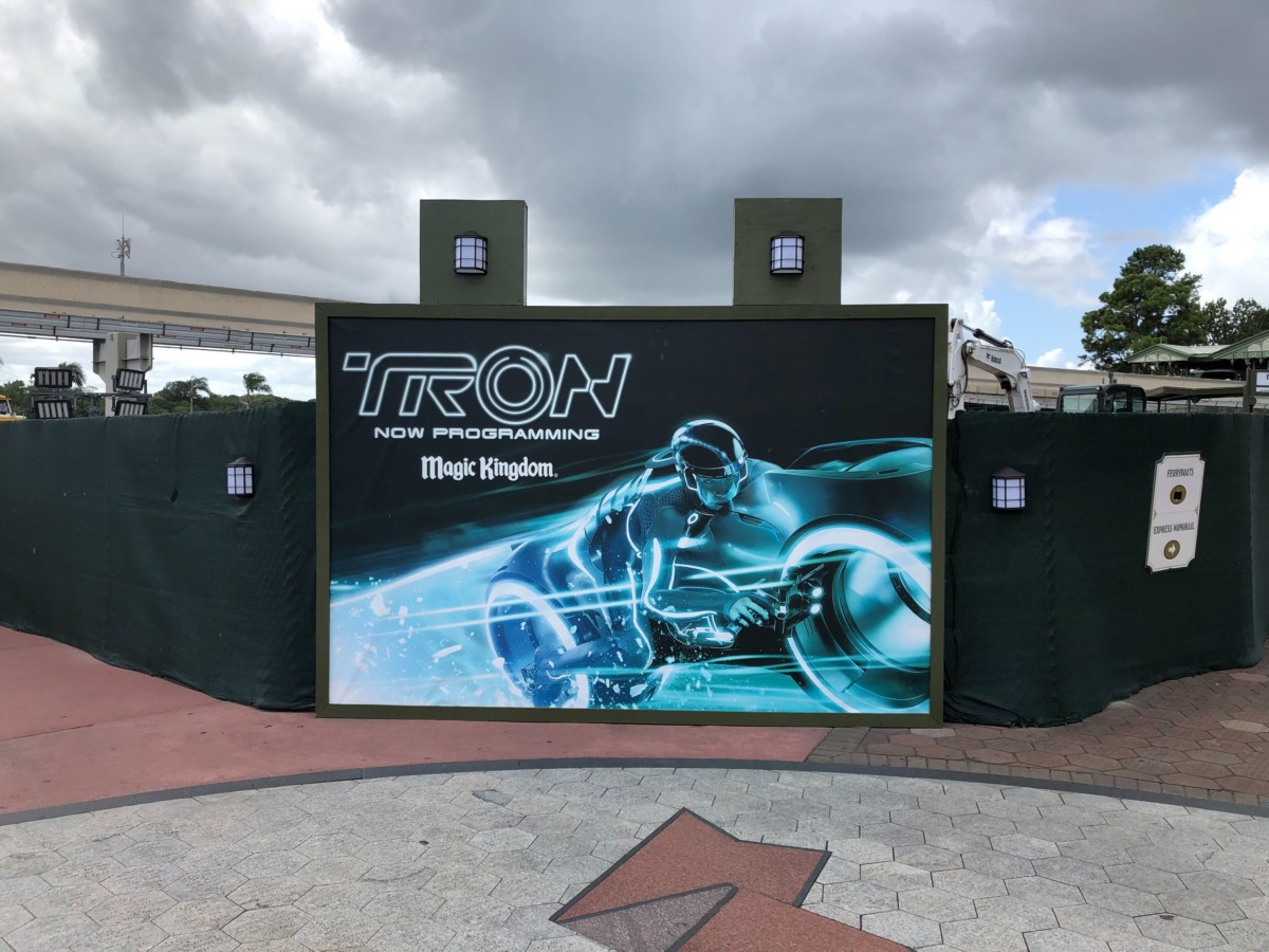 Welcome back to the Magic Kingdom, and future home of TRON Lightcycle Run. As soon as we arrived at the park this morning, we were greeted by a brand new sign on the construction walls at the entrance. This is probably a sign that we should stop in a check in on the latest progress.