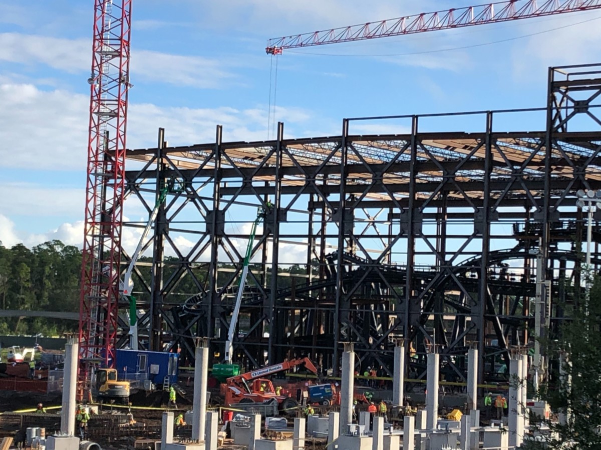 The columns located closer to Space Mountain are starting to take shape. These were rebar framework until recently, but now we can see the cement columns forming the outline of what could potentially be the entrance.