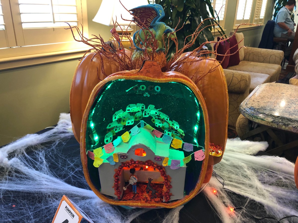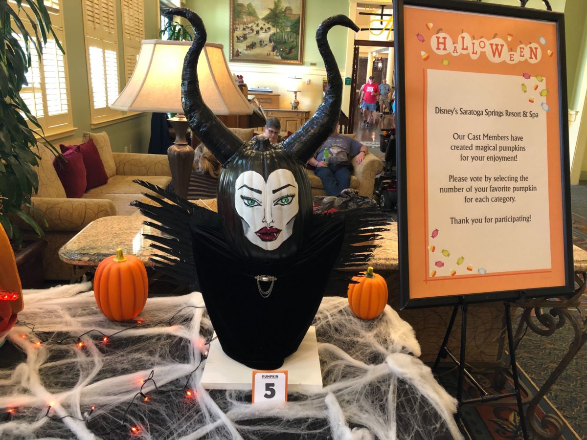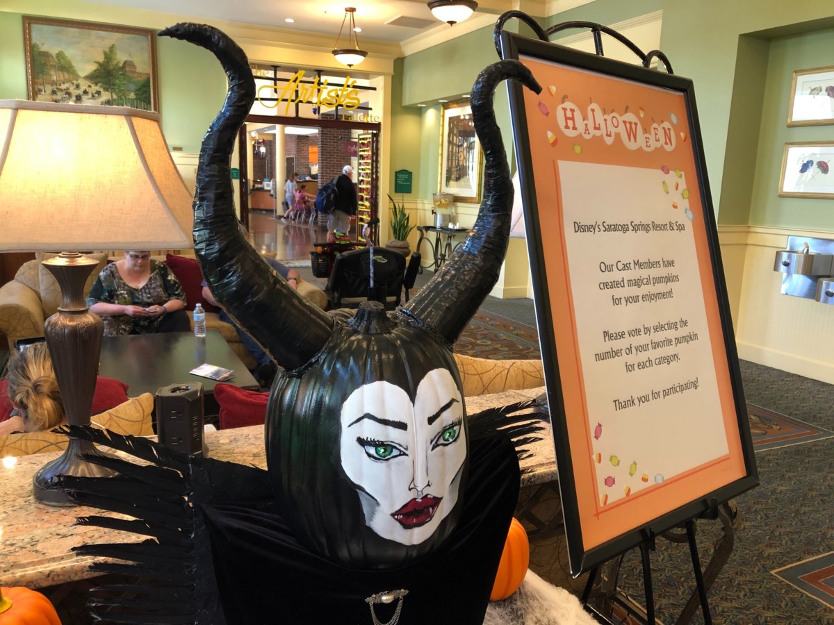 Cast Members at Saratoga Springs Resort and Spa are competing in a pumpkin decorating contest, so we stopped in to check them out. Different departments have put together these displays, and now it’s time to vote for your favorites! Take a look at the Halloween displays these Cast Members have put together.