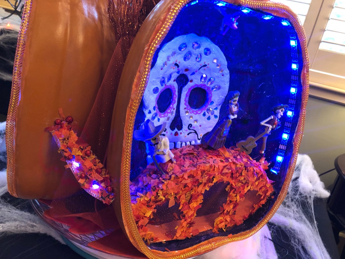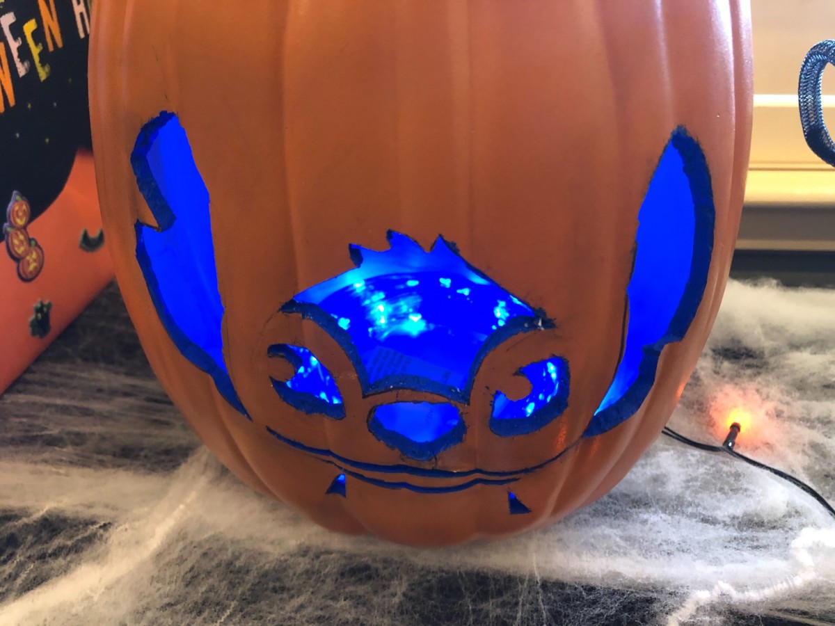 This Stitch pumpkin looks great with the blue lighting inside. This is something I might have to try.