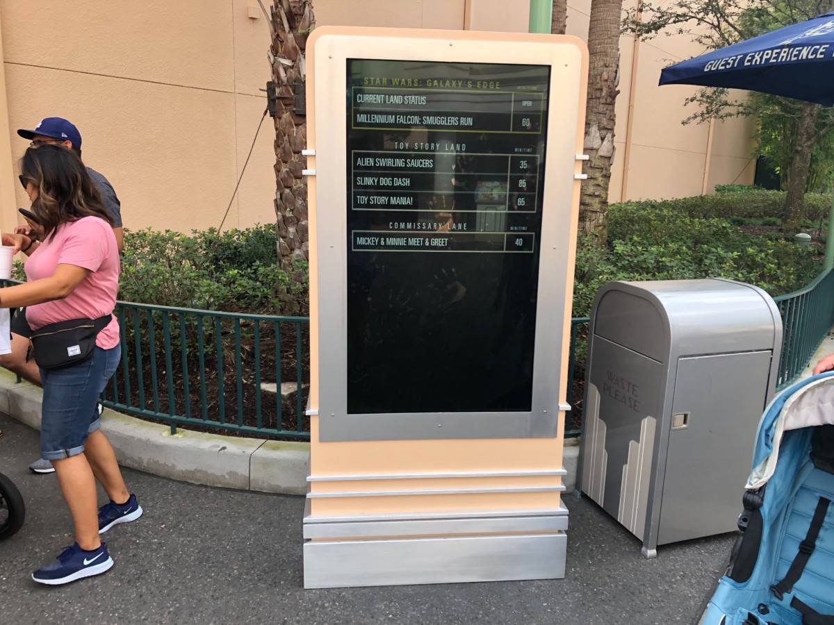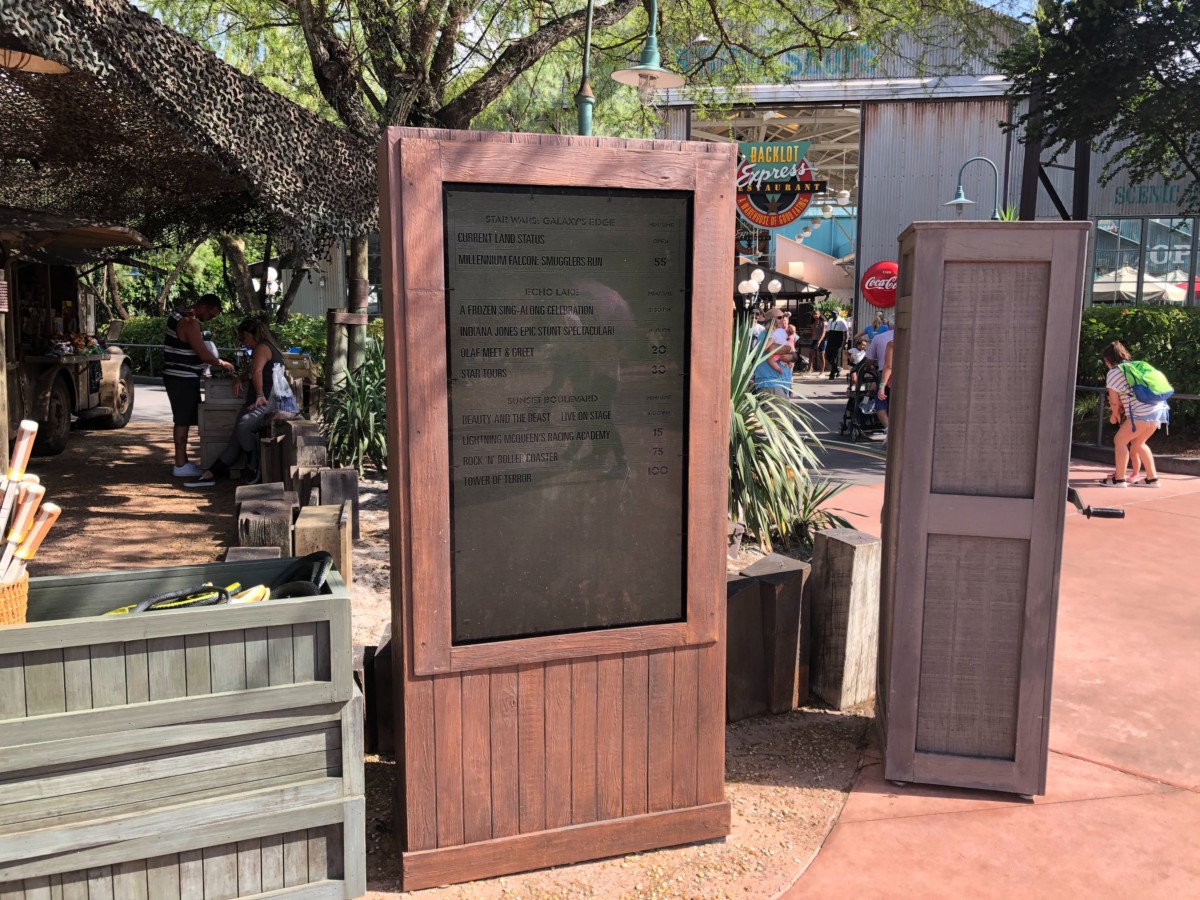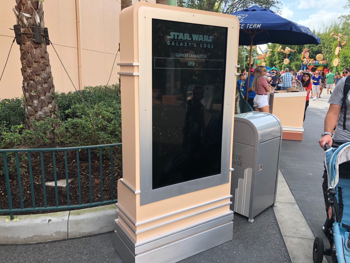 Over the summer, we noticed many changes around Disney’s Hollywood Studios to prepare for the grand opening of Star Wars: Galaxy’s Edge. Among those changes were the addition of digital tip boards around the park. Temporary signs went up all over the park to help guests figure out the wait times of attractions and the “status” of Galaxy’s Edge.