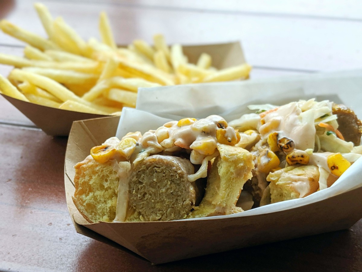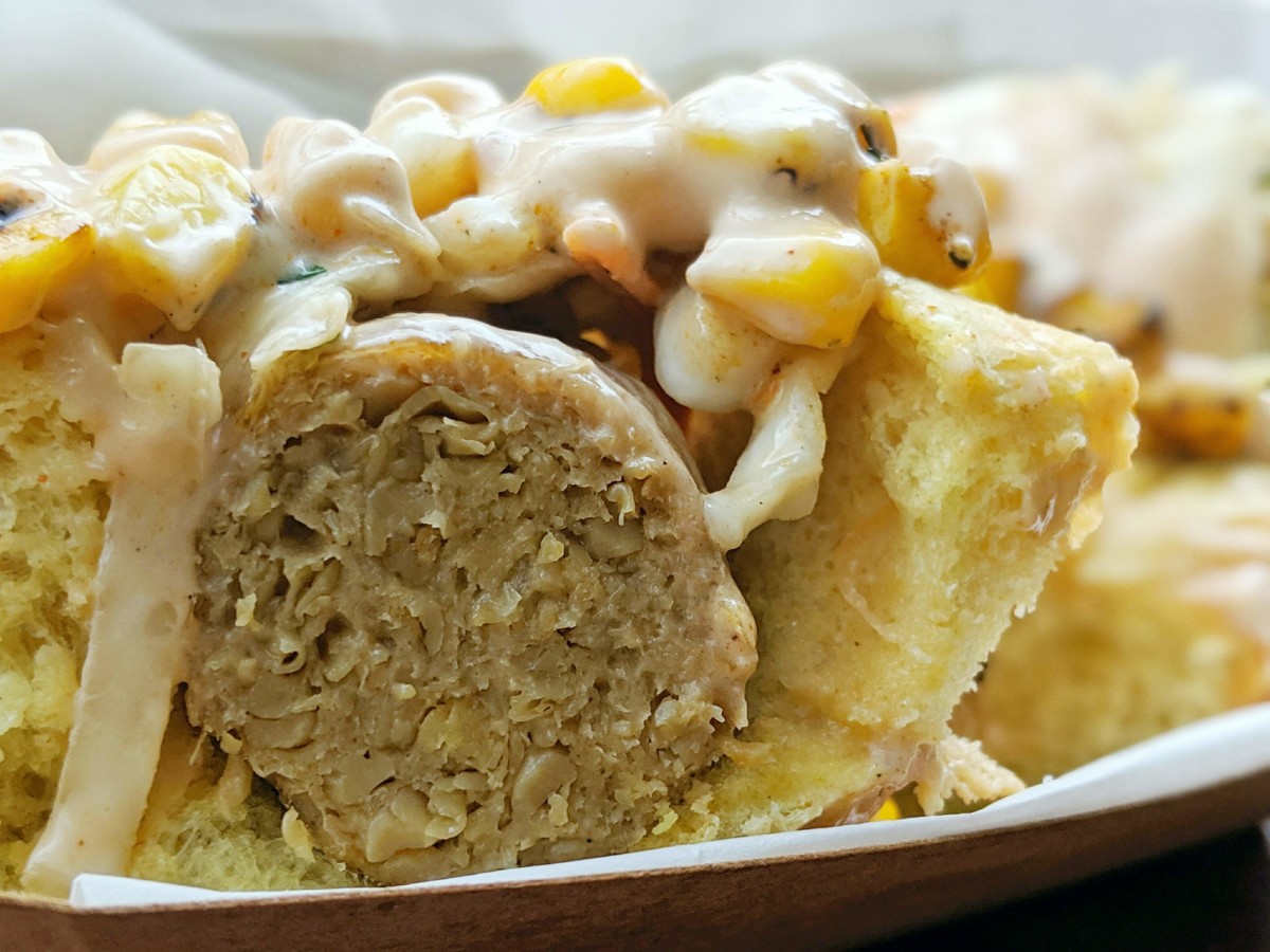 However, despite the sausage being a Hot Italian, it did not come at a hot enough temperature for our liking. The sausage was also lacking any spice or flavor. When eating the sausage alone, it was puzzling to figure out if all the flavor was just in the slaw and the BBQ vegan aioli on top… but then again, that’s kind of how hot dogs usually work. (The condiments form a large part of the flavor profile.)