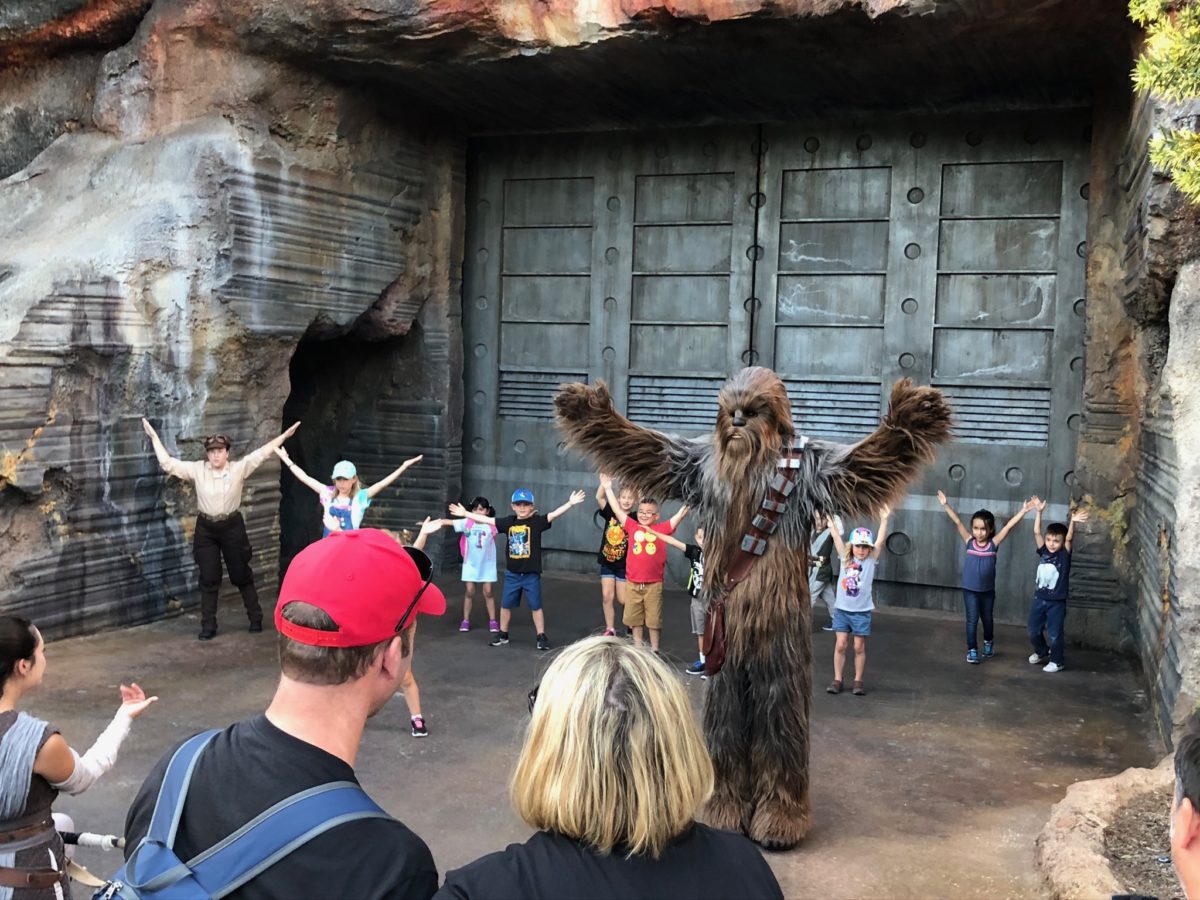 Chewbacca was also found outside Black Spire Outpost. You can see him here playing a game called “X-wing, A-wing,” which is a Batuu version of the game “green light, red light.”