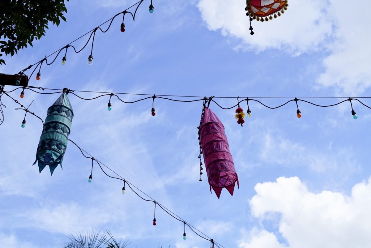 In Asia, a small addition has been made to the holiday decorations. Lights and bells were added to the strands of Diwali lanterns.