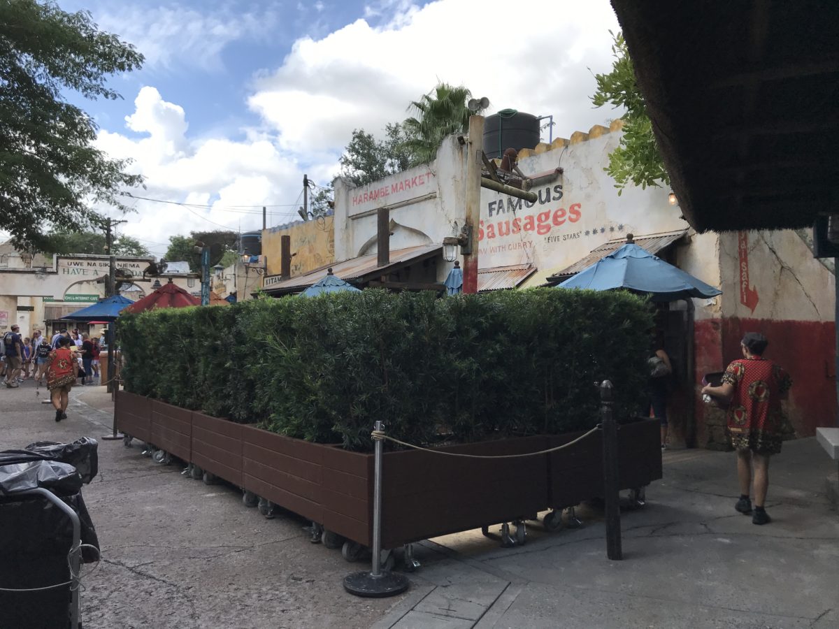 At Harambe Market, construction hedges appeared in front of Chef Mwanga’s Ribs Shop.