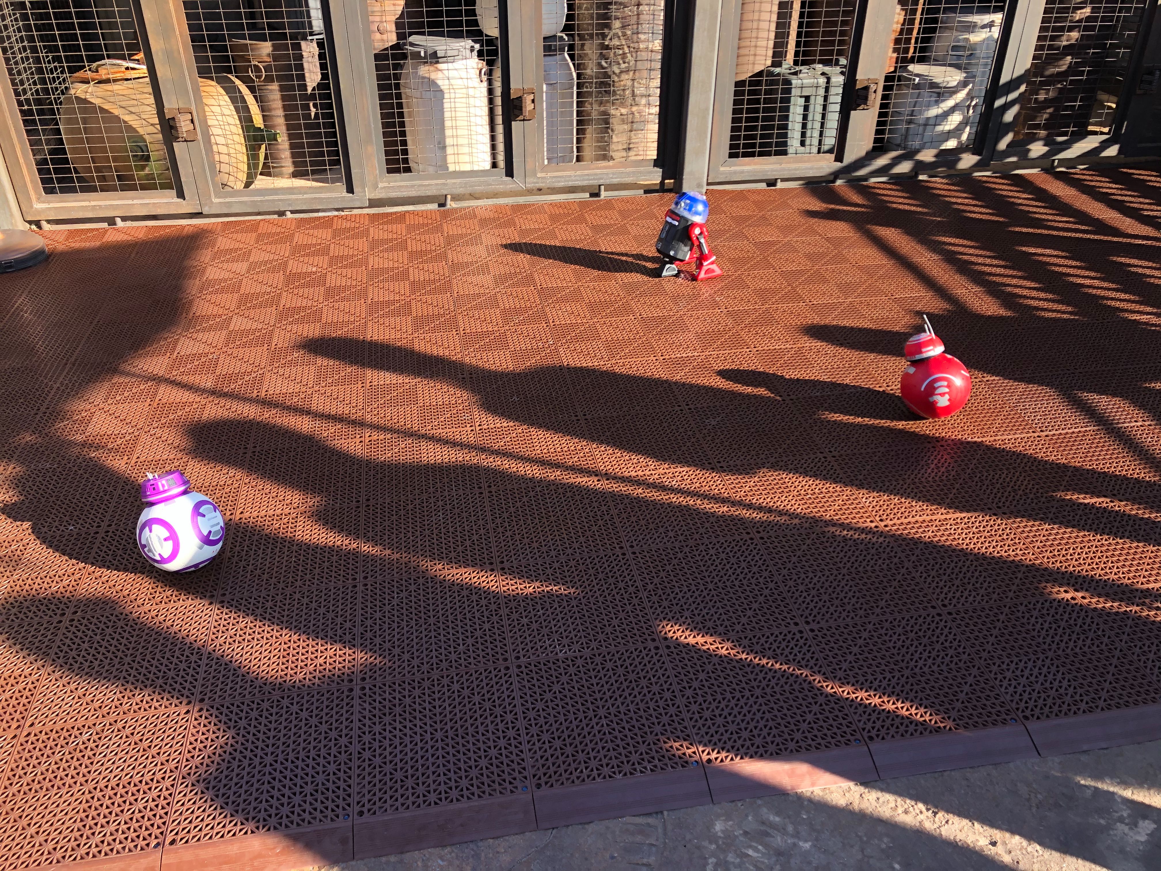Always fun to watch the droids rolling around on the testing mat outside of Droid Depot.