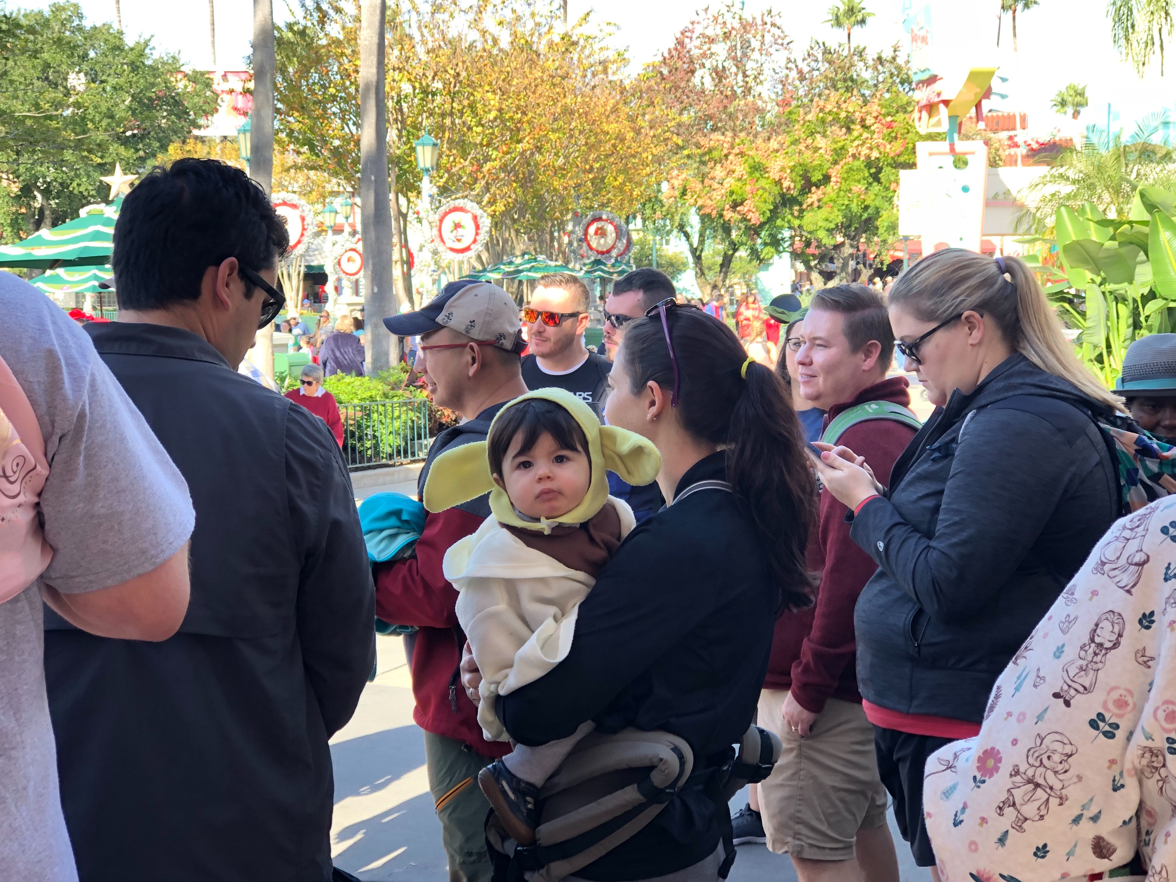We might not have a “Baby Yoda” plush yet, but we still spotted an adorable baby dressed as Yoda.