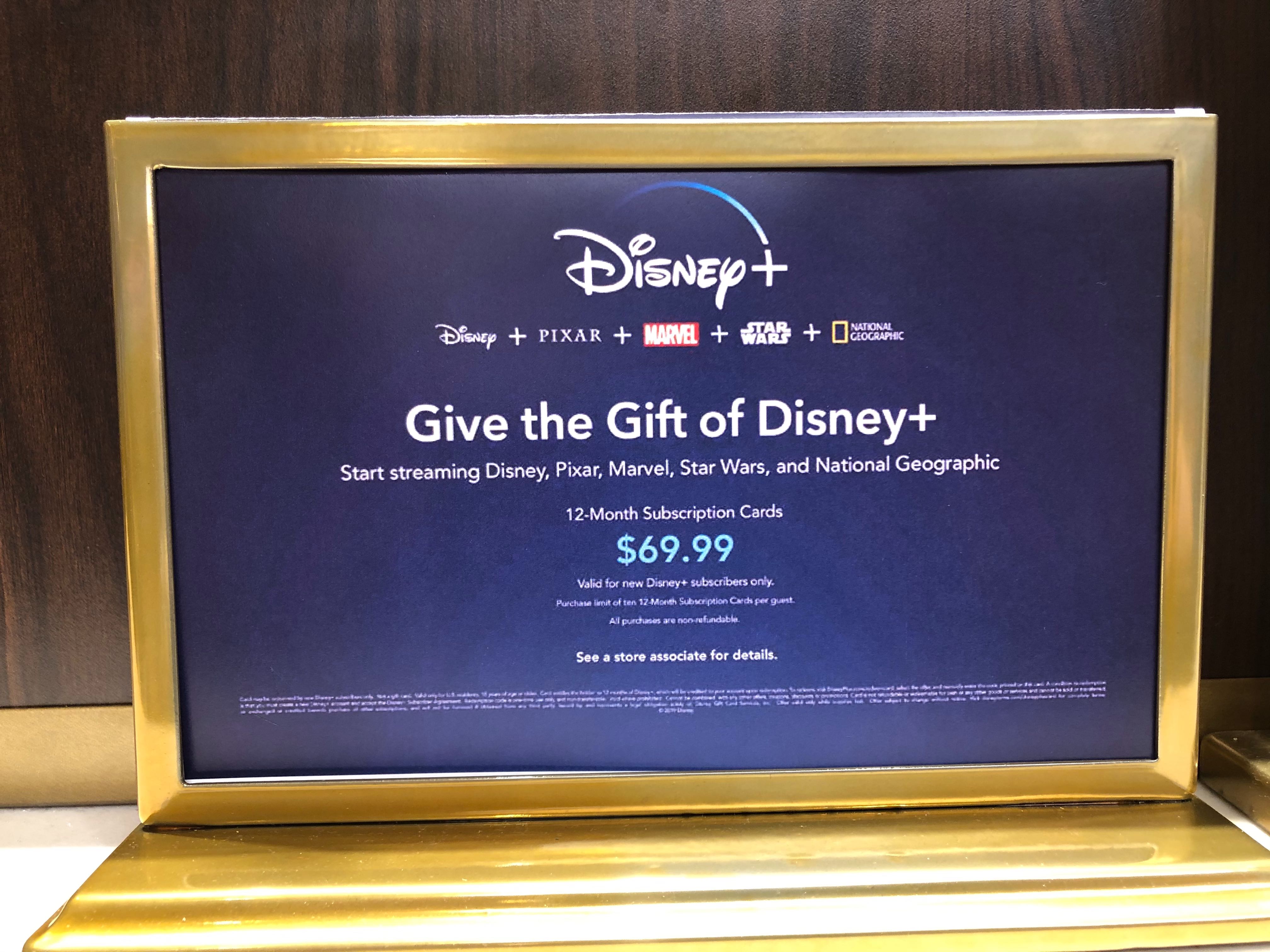 Inside Mickey’s of Hollywood, we spotted a sign by the register advertising Disney+ Subscription Cards. These would make a fantastic gift. Each card is good for a one year subscription to Disney+ for $69.99.