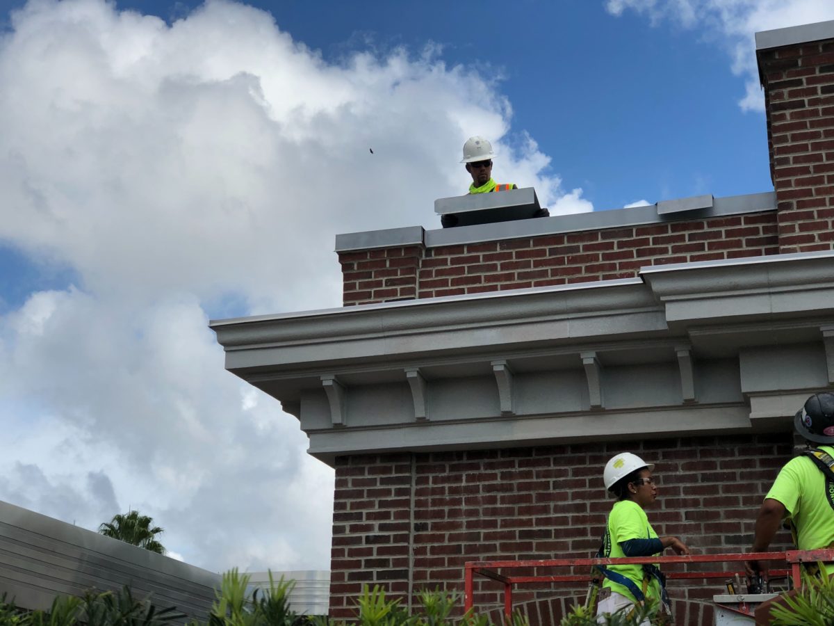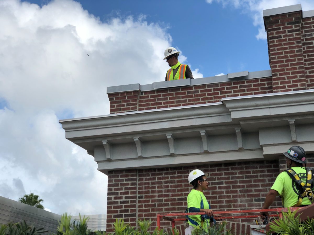 The bathrooms across from Grand Avenue seem to coming along. Crew is actively working on painting and installing framework to the exterior of the building.