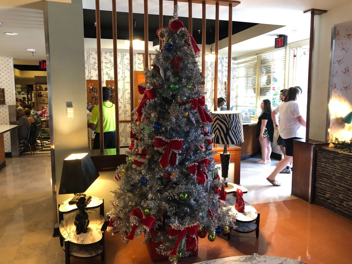 More Christmas decor can be found inside some of the shops and restaurants, too. We spotted some nicely decorated trees inside the Tune In Lounge and inside Baseline Tap House.