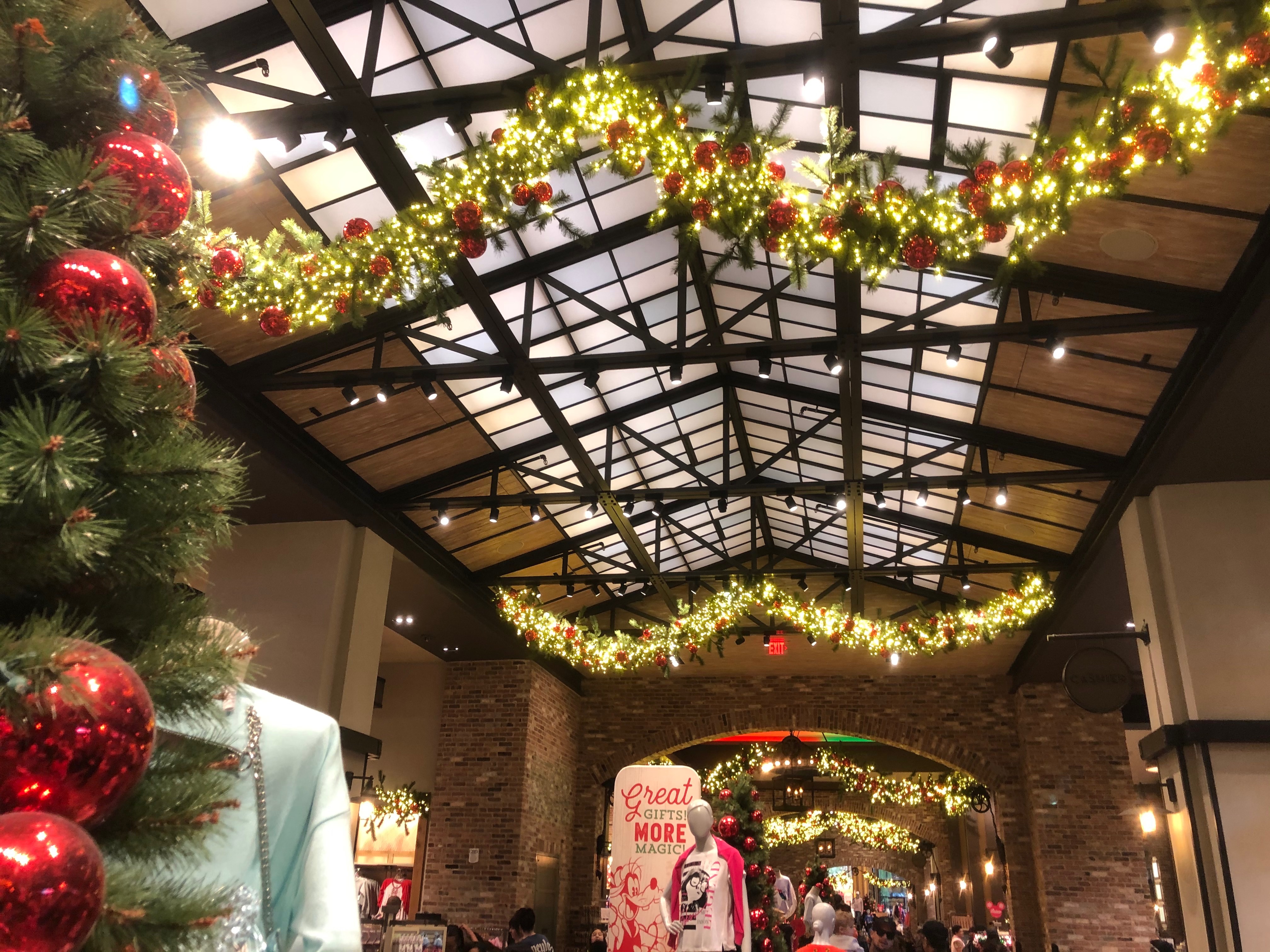 World of Disney is festive as always with lights and garland.
