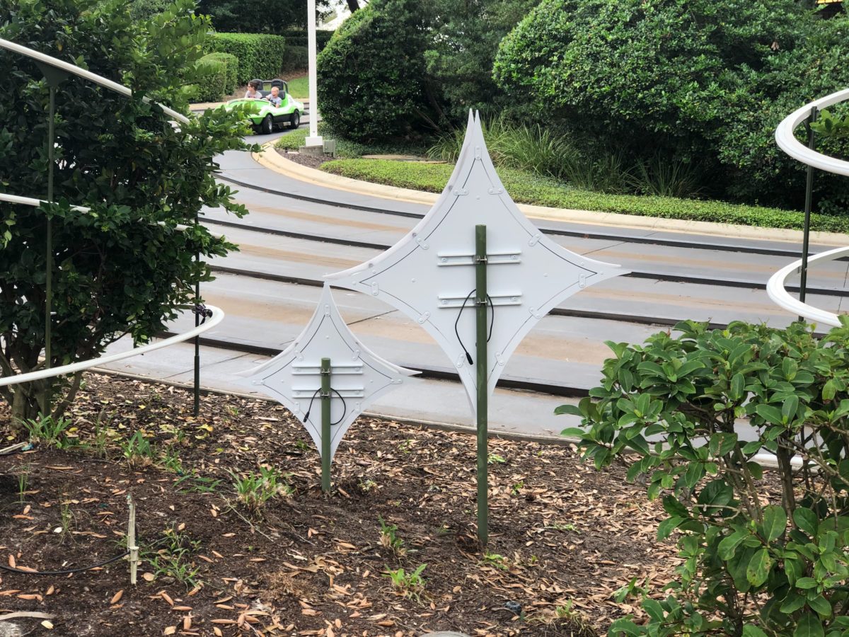 More props have been added to the Tomorrowland Speedway Christmas party overlay since our last visit. Twinkling stars and diamond shapes can be spotted around the track now, making us even more excited to experience it at the party.