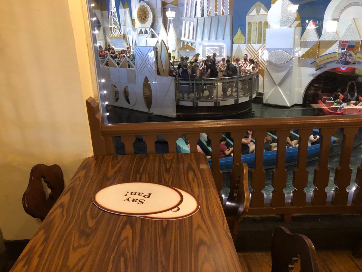 These cards inside Pinocchio Village Haus are fun on a busy day. Hold them up to the windows of “it’s a small world” and watch the action.