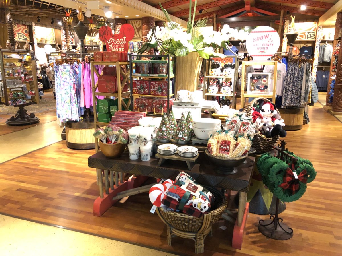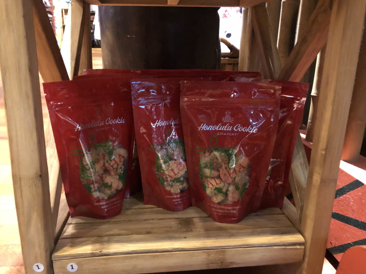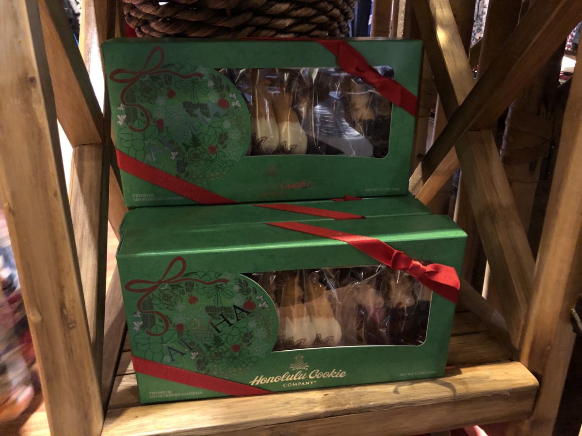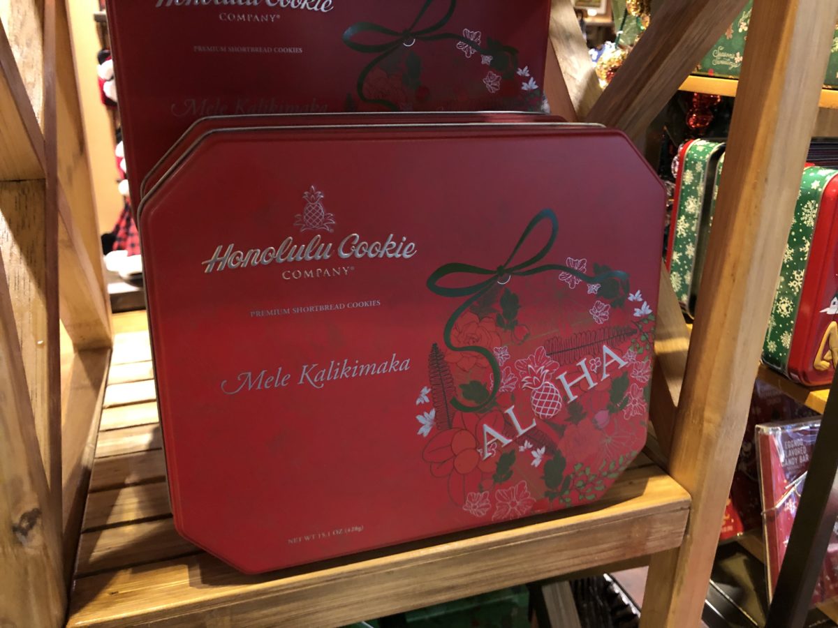 Christmas merchandise has taken over the main table inside the entry to Boutiki, including the new holiday tins from Honolulu Cookie Company.