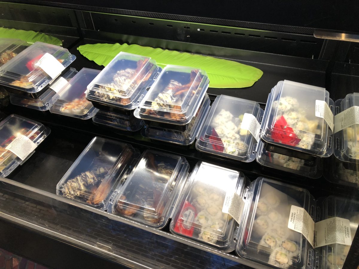 We did spot a few pre-made sushi rolls in the to-go cooler down below next to some bacon.
