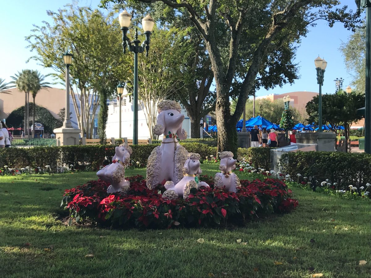 In keeping with the 1950s vibe, you’ll notice that a lot of the holiday decor in the park takes inspiration from kitschy vintage classics like these little deer ornaments, ceramic poodles, and other things you’d normally see gracing your grandmother’s cupboards. If you’ve dined at 50’s Prime Time Cafe, you’ll also recognize a lot of these elements.