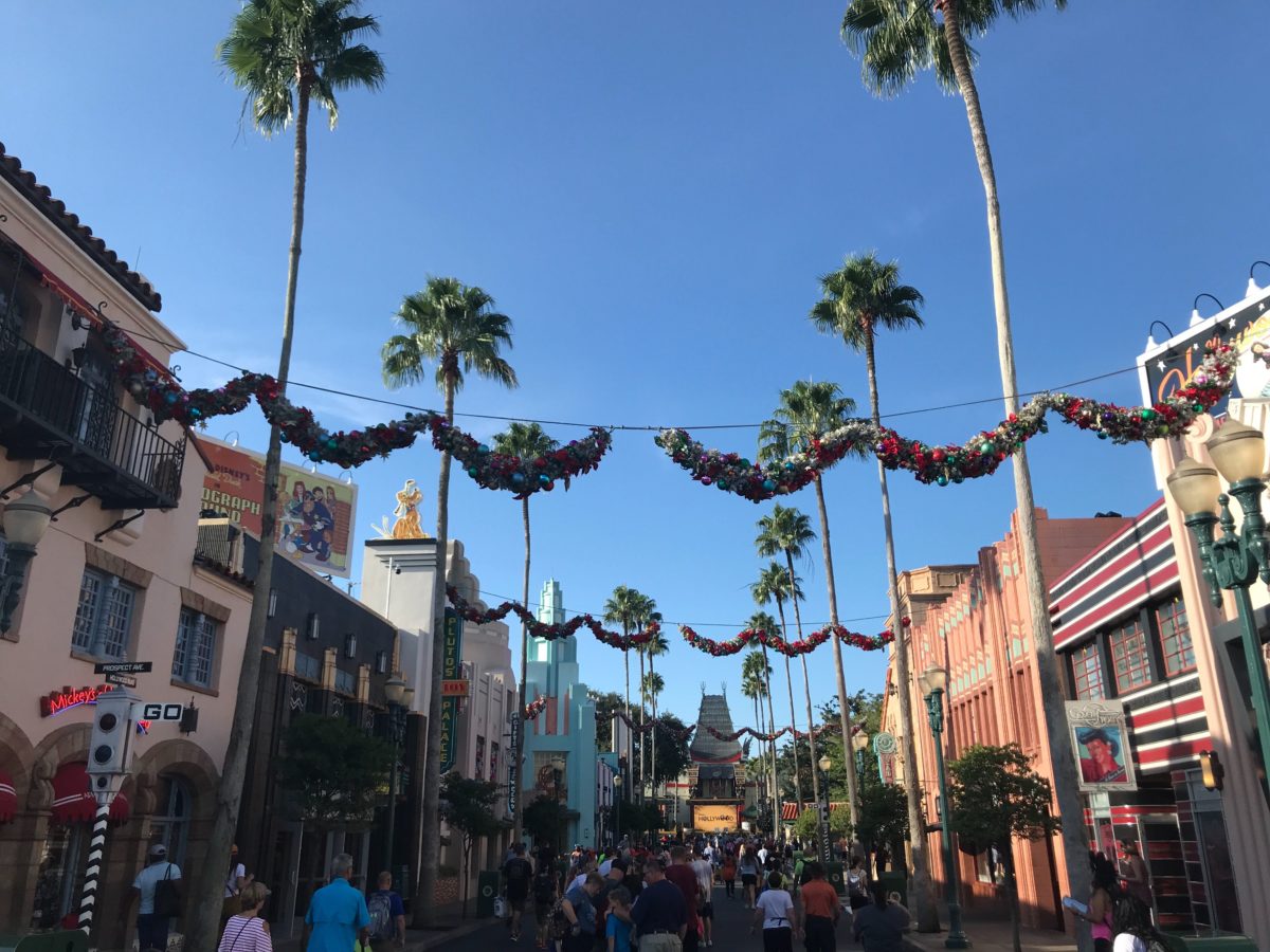 Throughout the park, you can tell that the decorating is still somewhat in progress. While lines and garlands were extended across Hollywood Boulevard, the center wreaths are still missing.