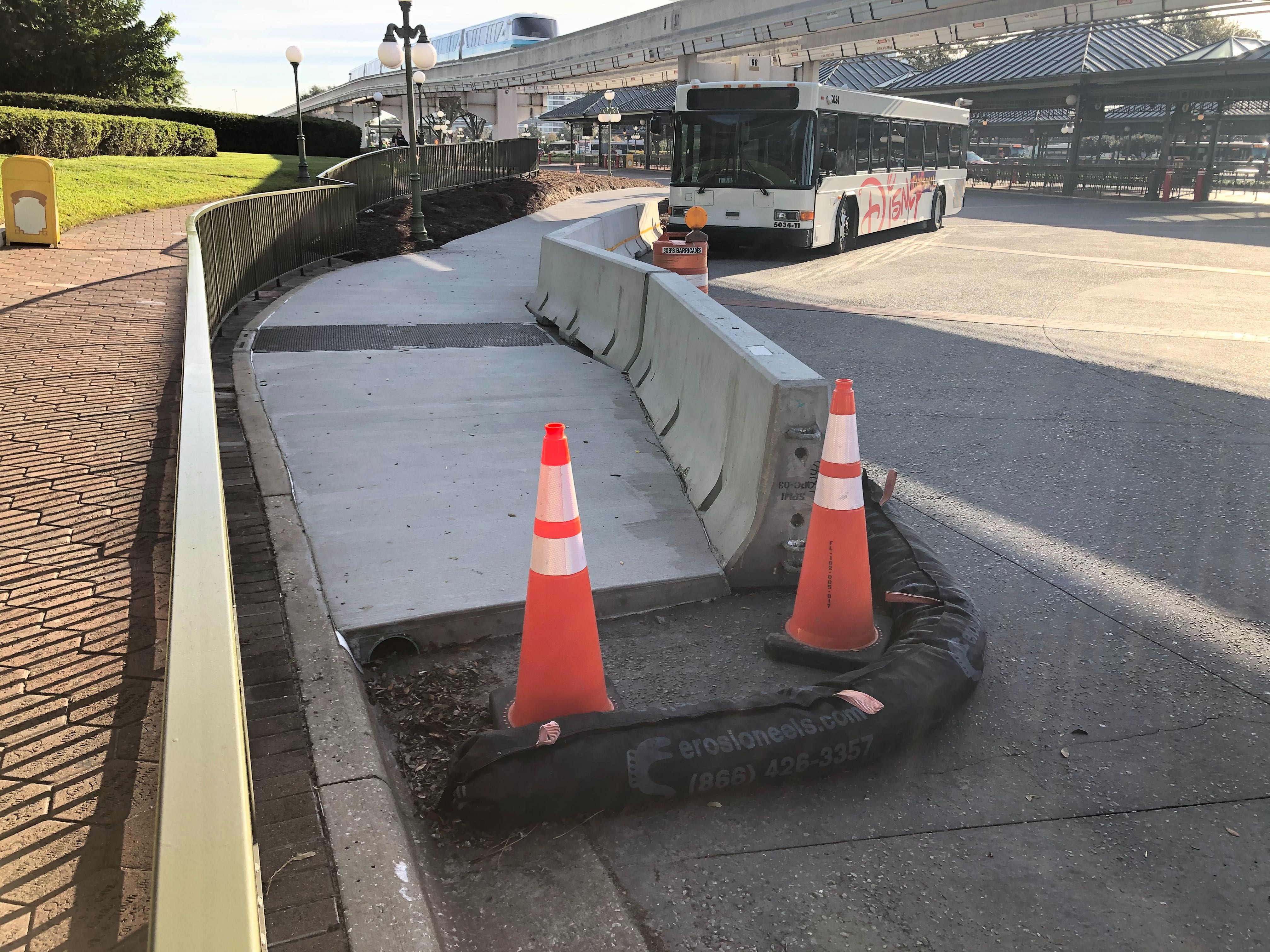 We updated you recently on the start of the project, but we’ve noticed more sections have been filled in since then. Barricades are set up around the pavement on the corner near the crosswalk to Disney’s Contemporary Resort.