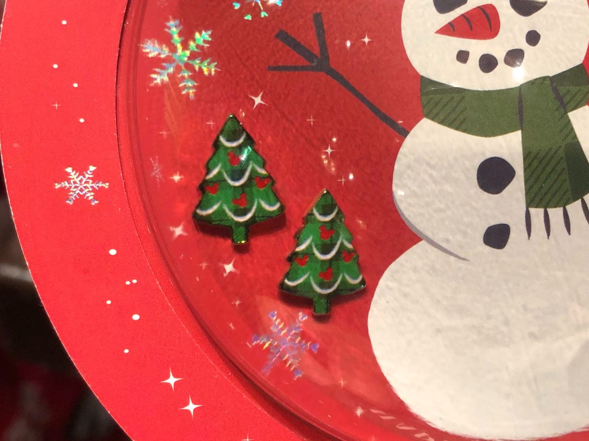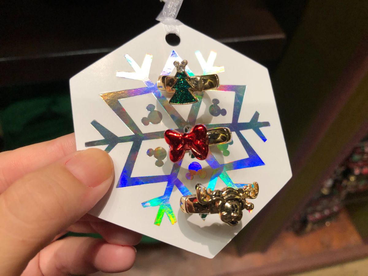 These earrings come in a three-pack set that is packaged in a clear plastic Disney Happy Holidays ornament that can easily be hung on a tree for decoration.