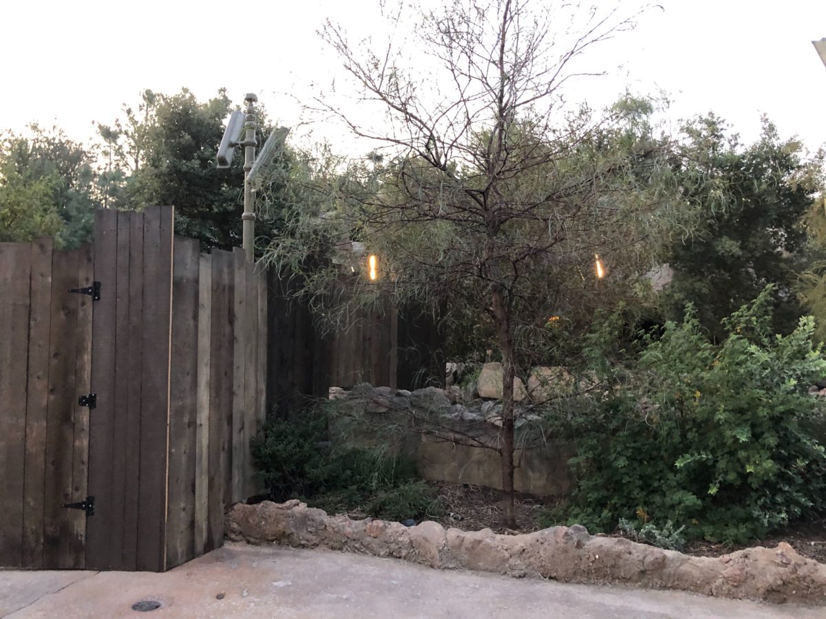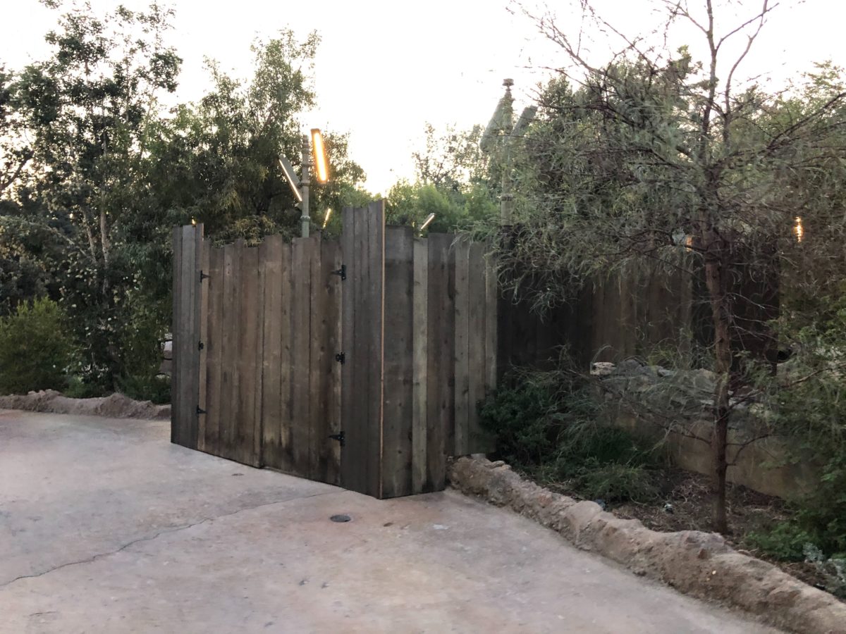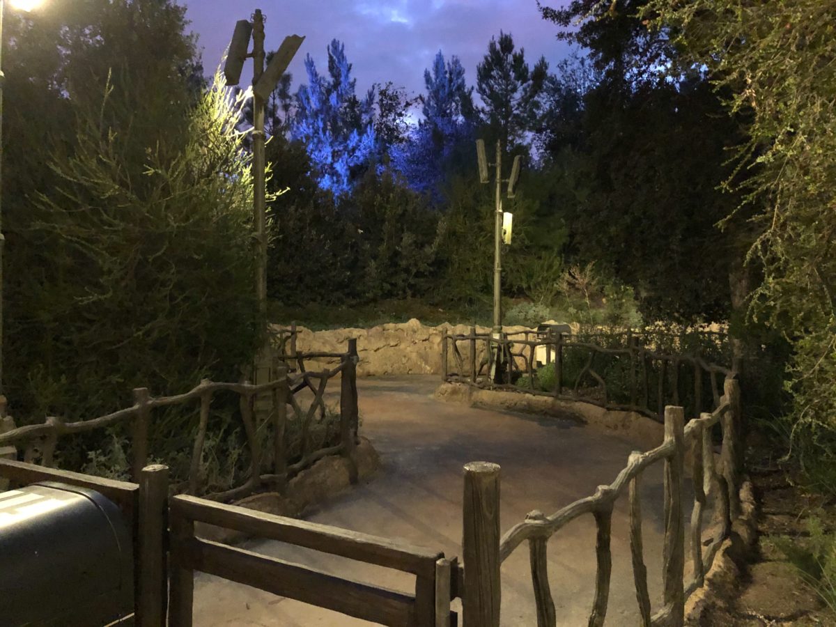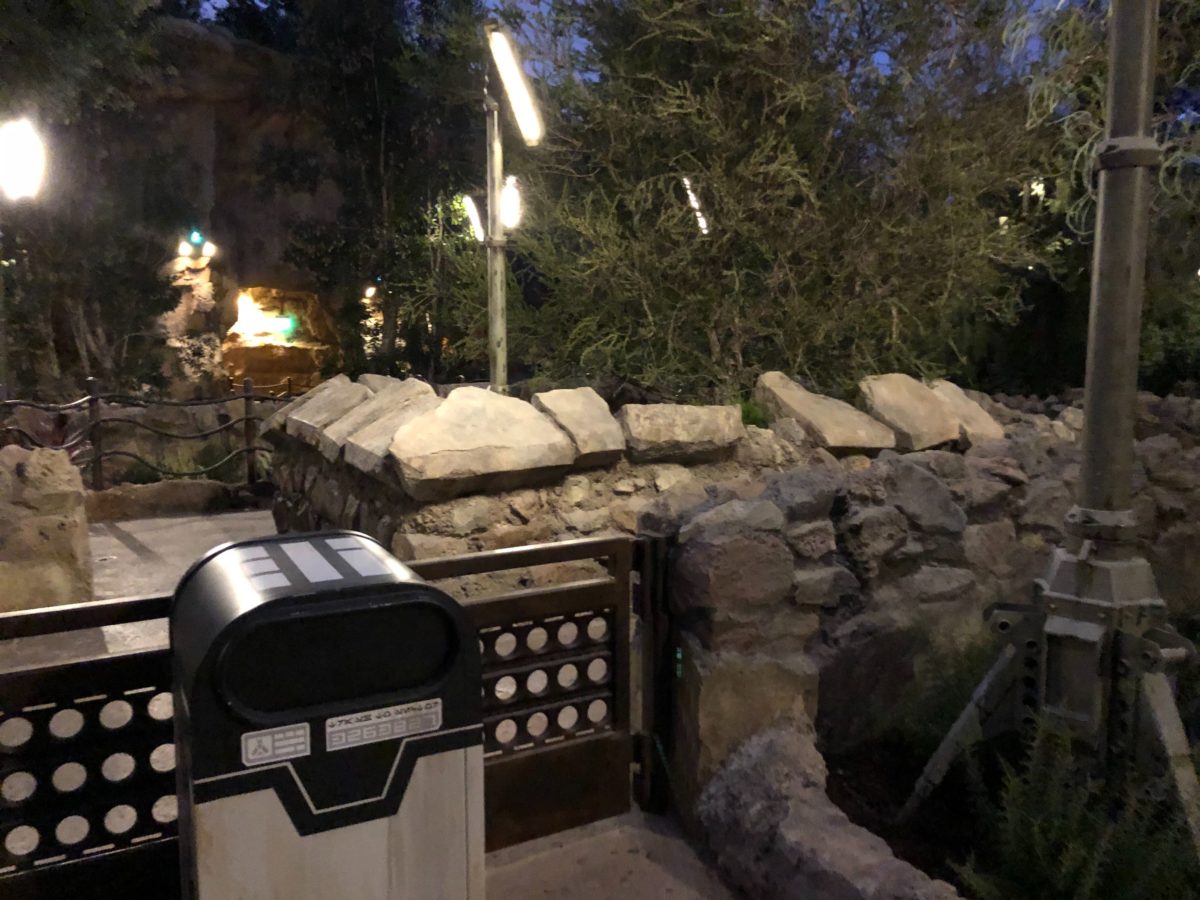 Here’s a look at what the area looked like with construction walls in place. You can see how deep back into the exit pathway that the themed construction walls went, but we are glad they are gone to make the pathway looks more natural and in-theme again.